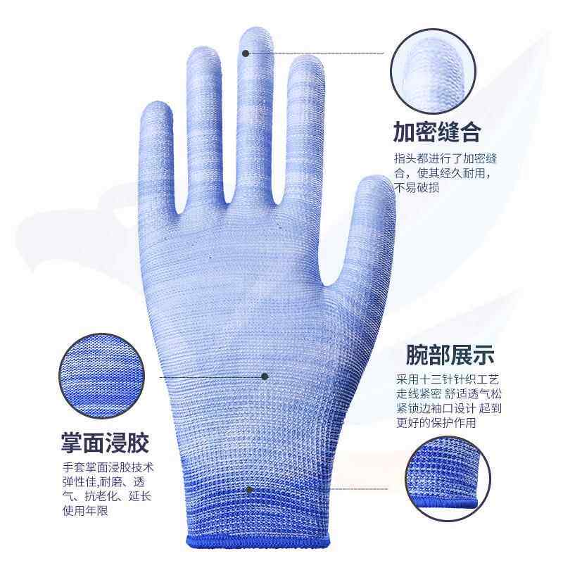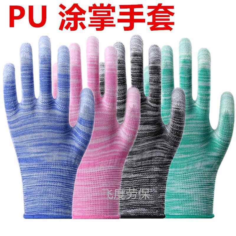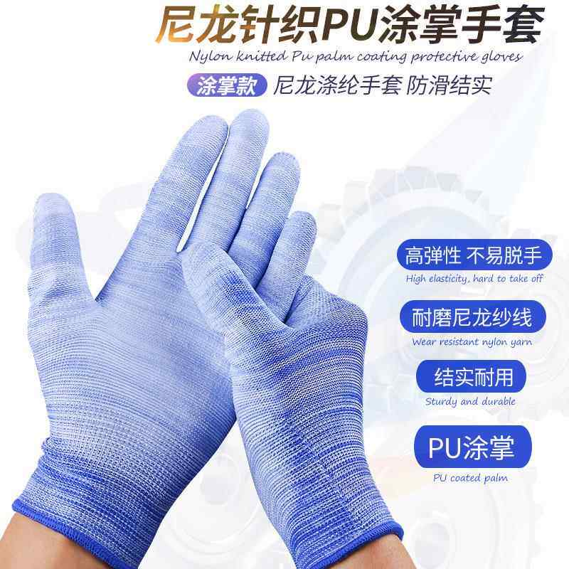 📚 PU涂掌涂指薄款尼龙胶皮手套劳保耐磨防滑透气劳动工作干活防静电