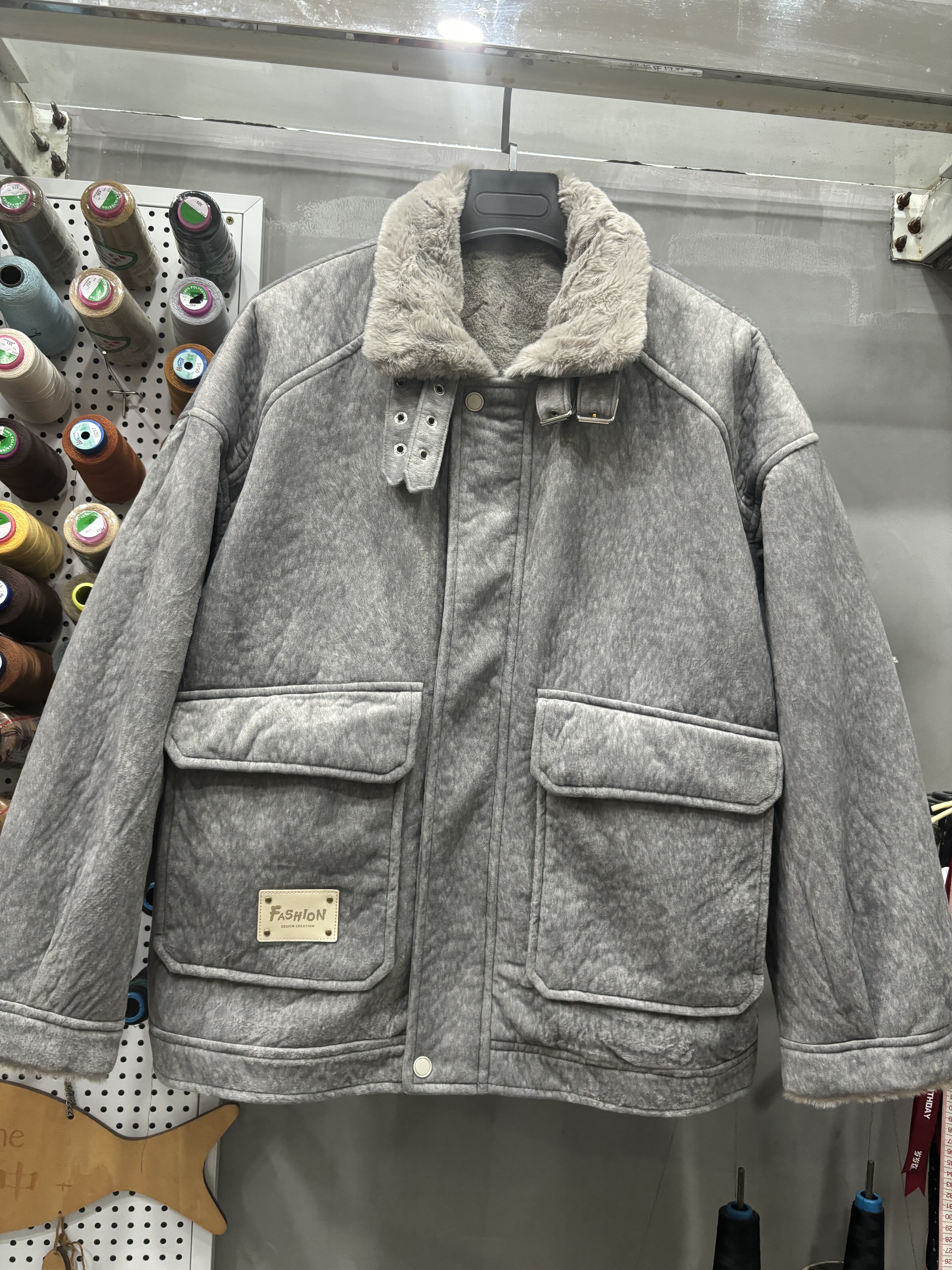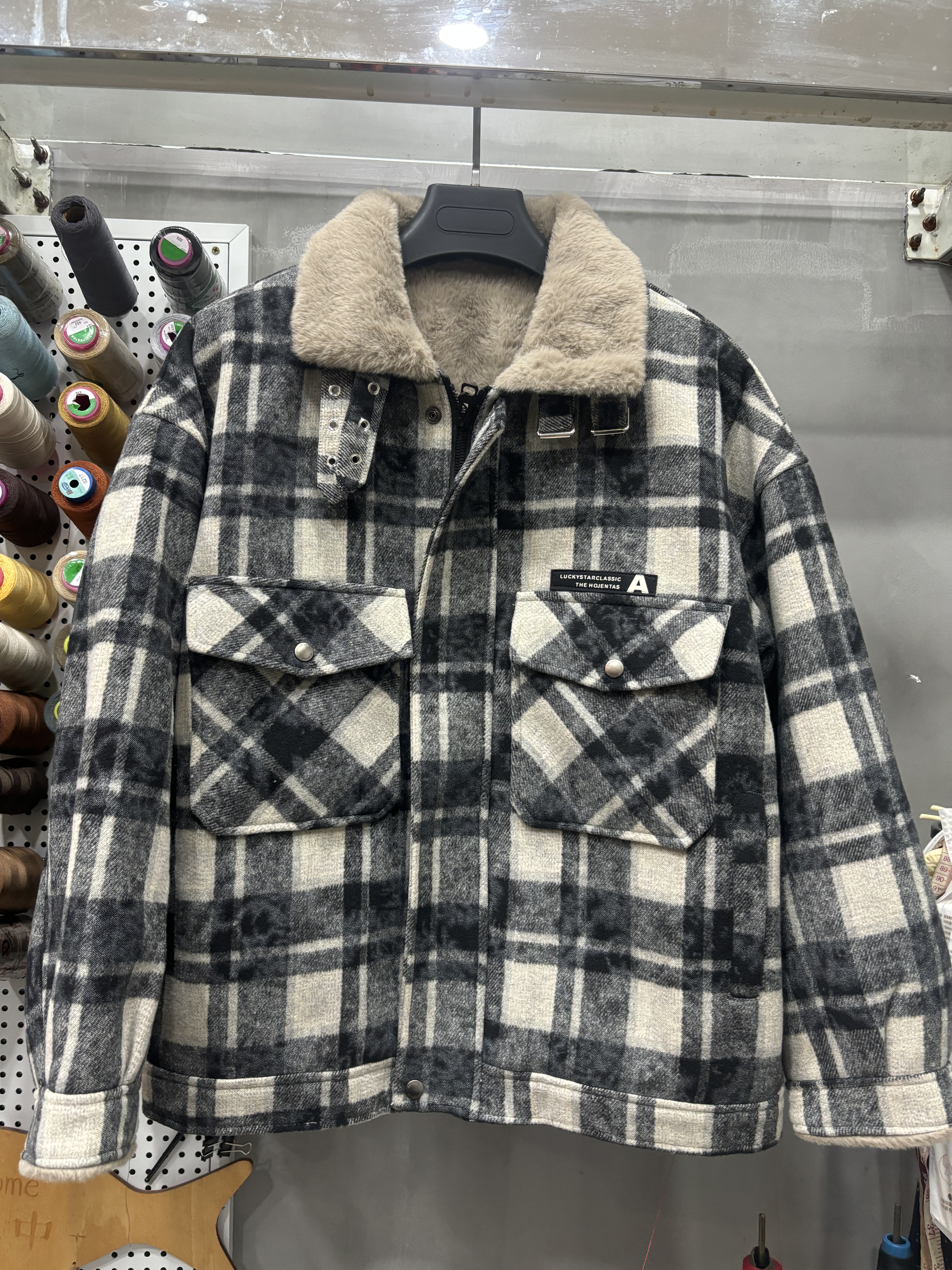 📚 美式复古仿兔毛里绒夹克棉服帅气男士休闲格子派克服上衣潮