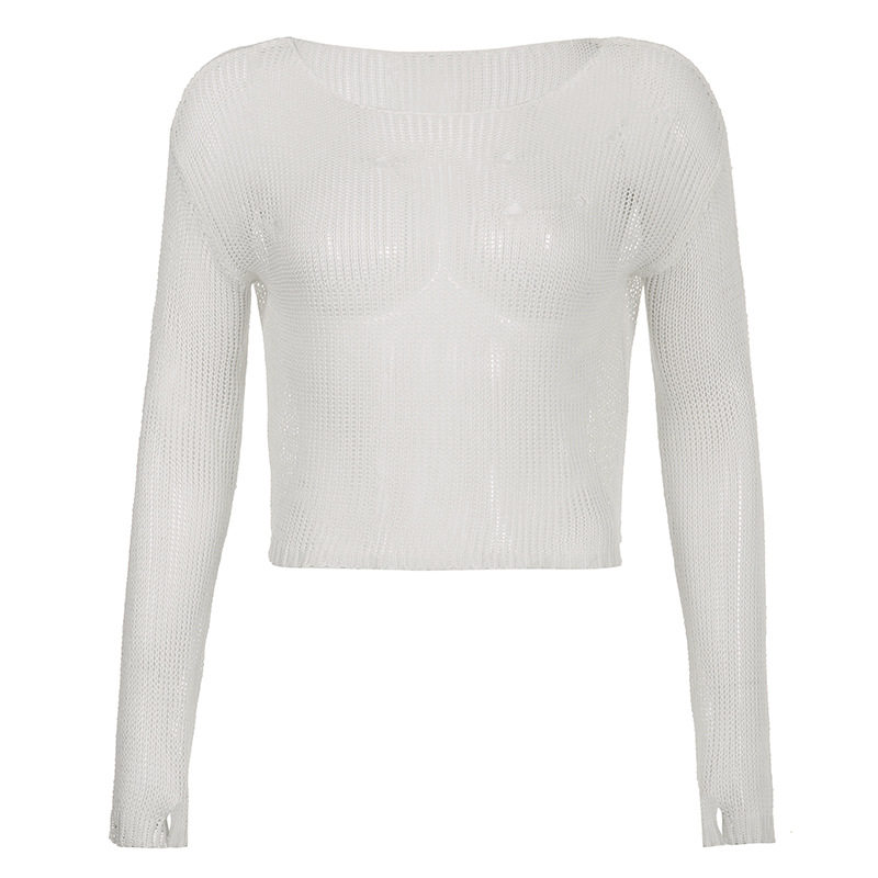 📚 Y2K Distressed Crochet Pullovers Summer 2000s Knit Smock Top