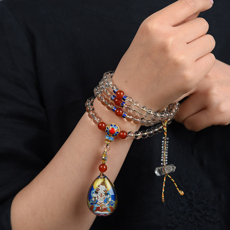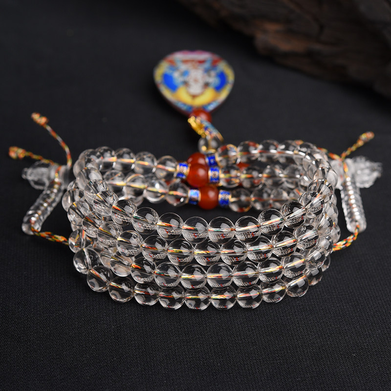 📚 天然白水晶手链金刚萨埵修法水晶108颗佛珠念珠手串男女包邮