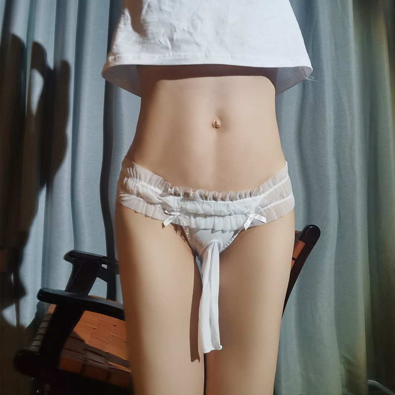 📚 新款性感少女网纱透明内裤男士带jj套飞机袜蕾丝边低腰情趣三角裤