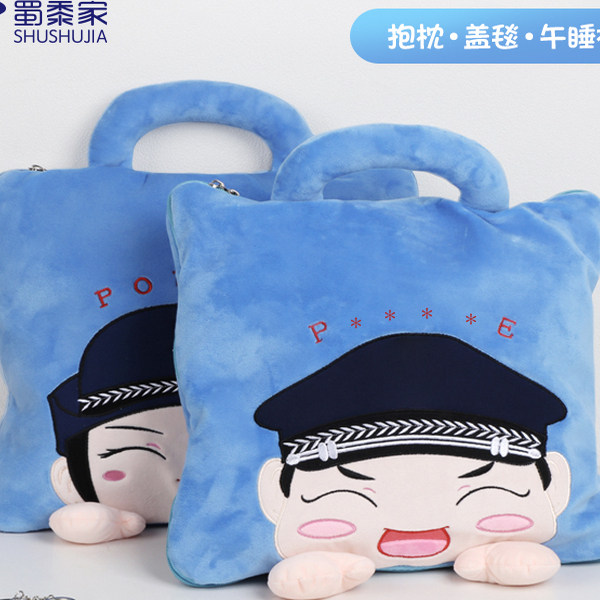 📚 蜀黍家手提式儿童抱枕卡通小警抱枕被现货舒适毛绒靠垫毛毯二合一