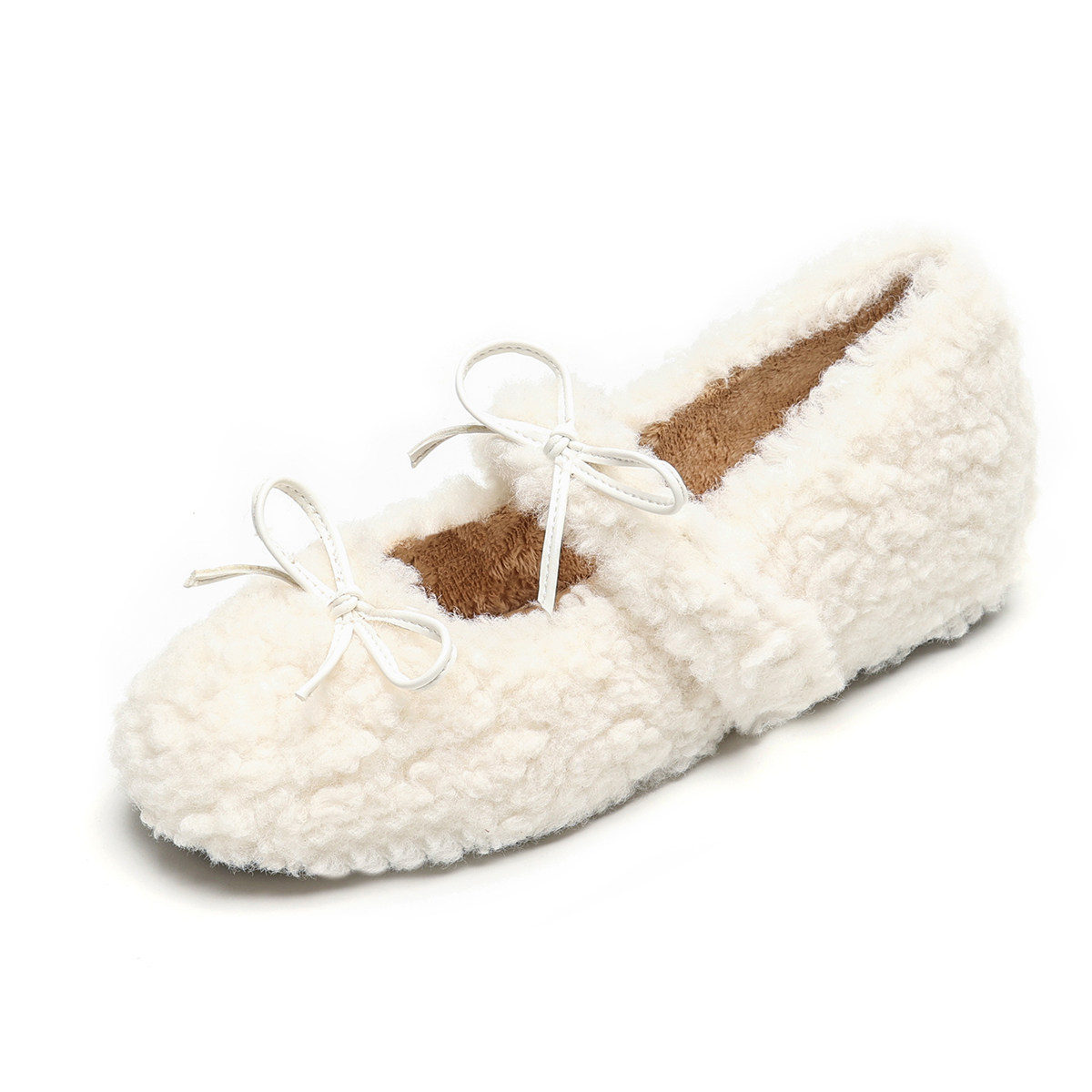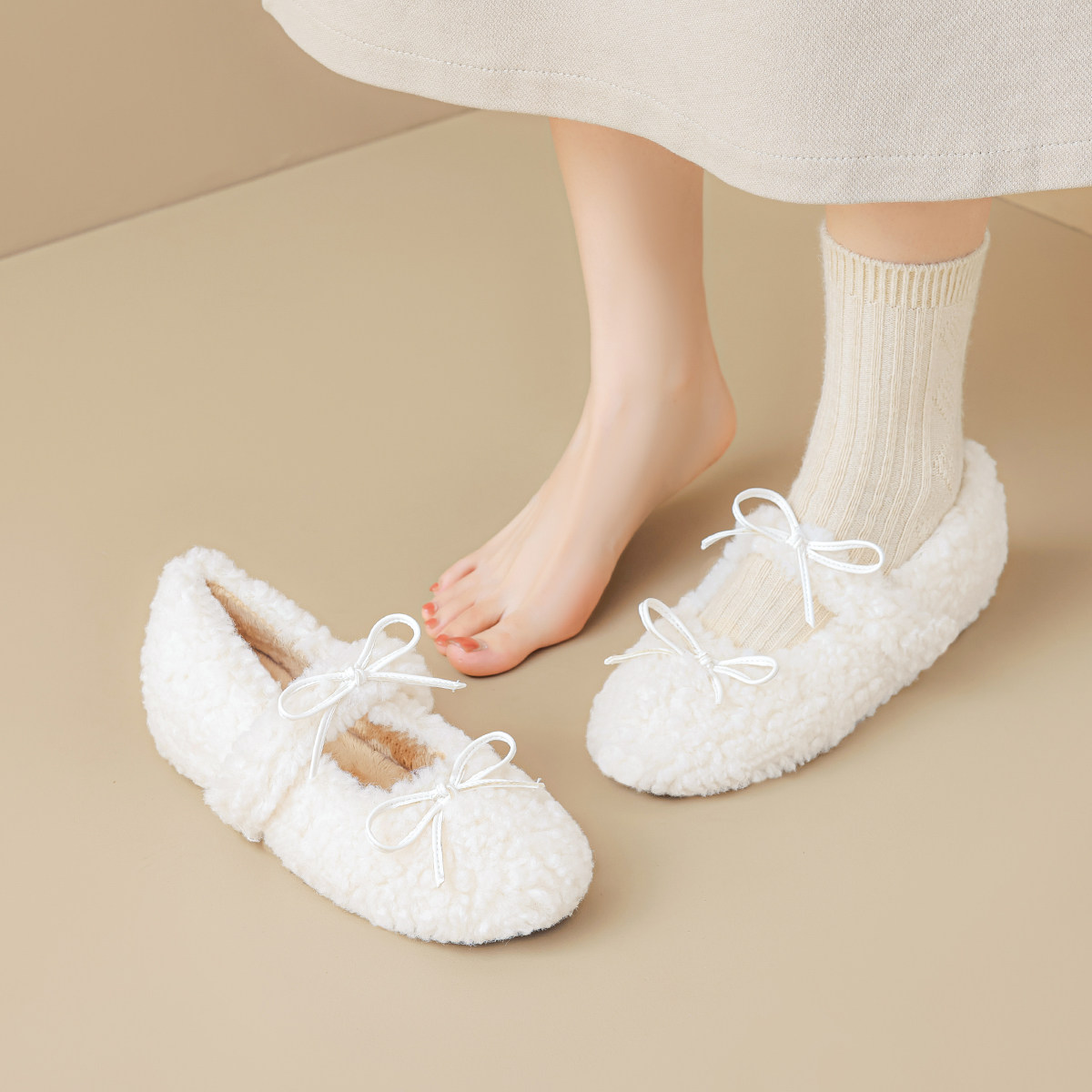 📚 蝴蝶结内增高毛毛鞋女冬外穿白色玛丽珍加绒豆豆鞋大码女鞋41到43