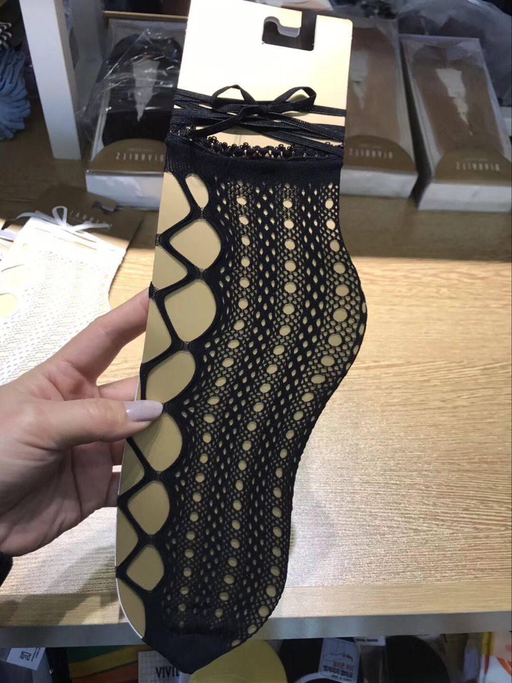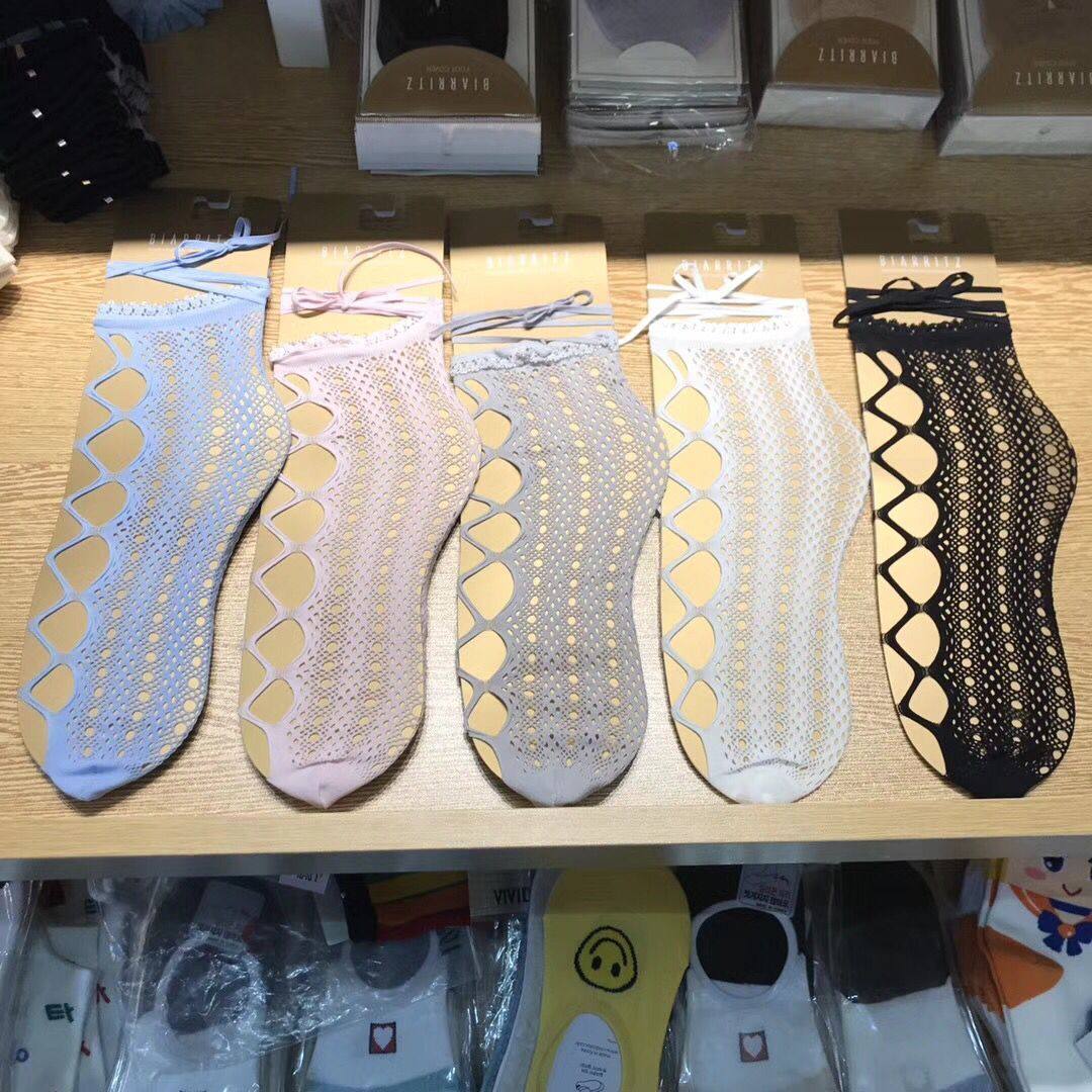 📚 袜子女网袜韩国进口代购BIARRITZ缕空网纹舞鞋系绳女18夏时尚潮