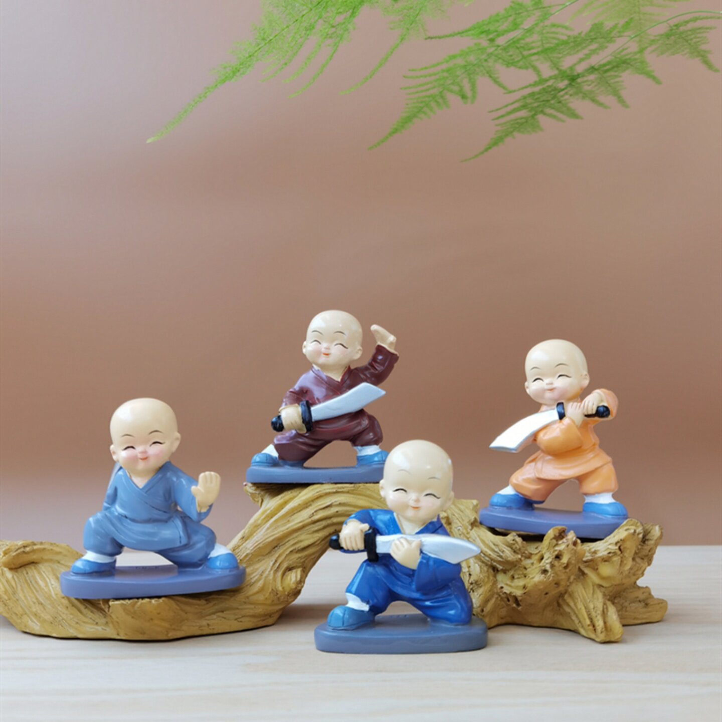 📚 功夫小和尚摆件打拳武术人物佛系迷你汽车公仔车载装饰品盆景假山