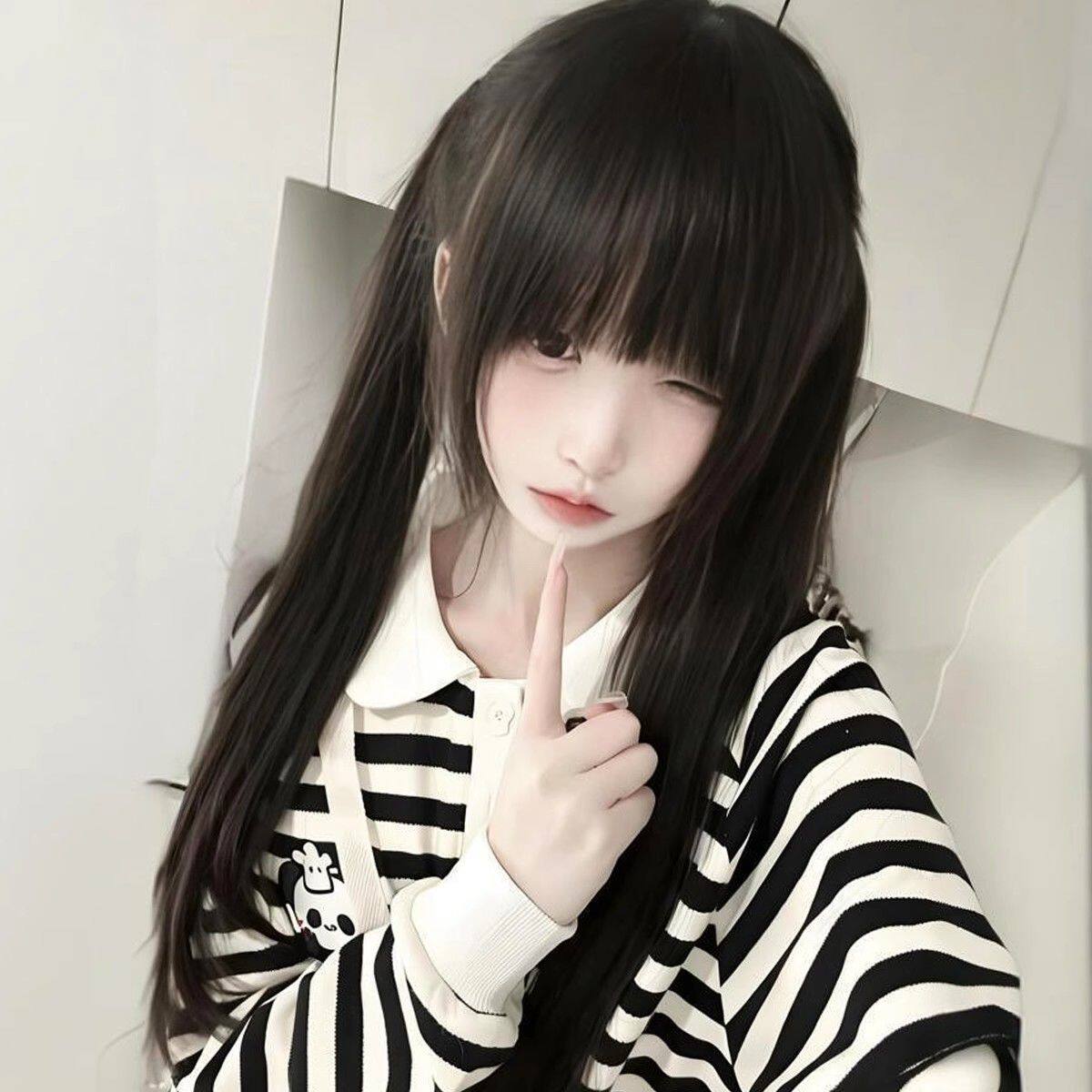 📚 【初恋情书】纤韵佳人假发女70cm黑长直双马尾lolita长直发全头套