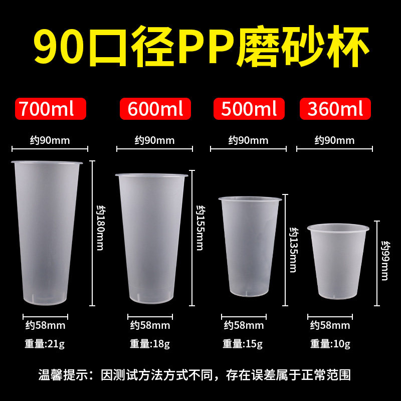 📚 90口径奶茶杯塑料杯定制磨砂注塑杯700ml奶茶杯子一次性商用500ml
