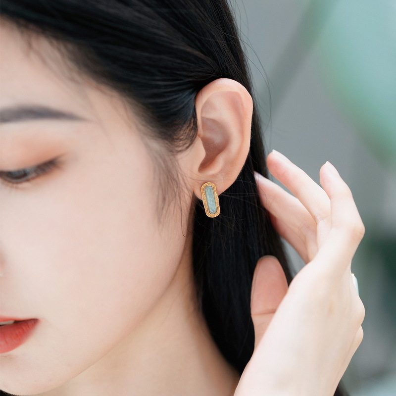 📚 新款日本轻奢天河石几何S925银渡18K金PT950铂金耳钉小巧海洋度假