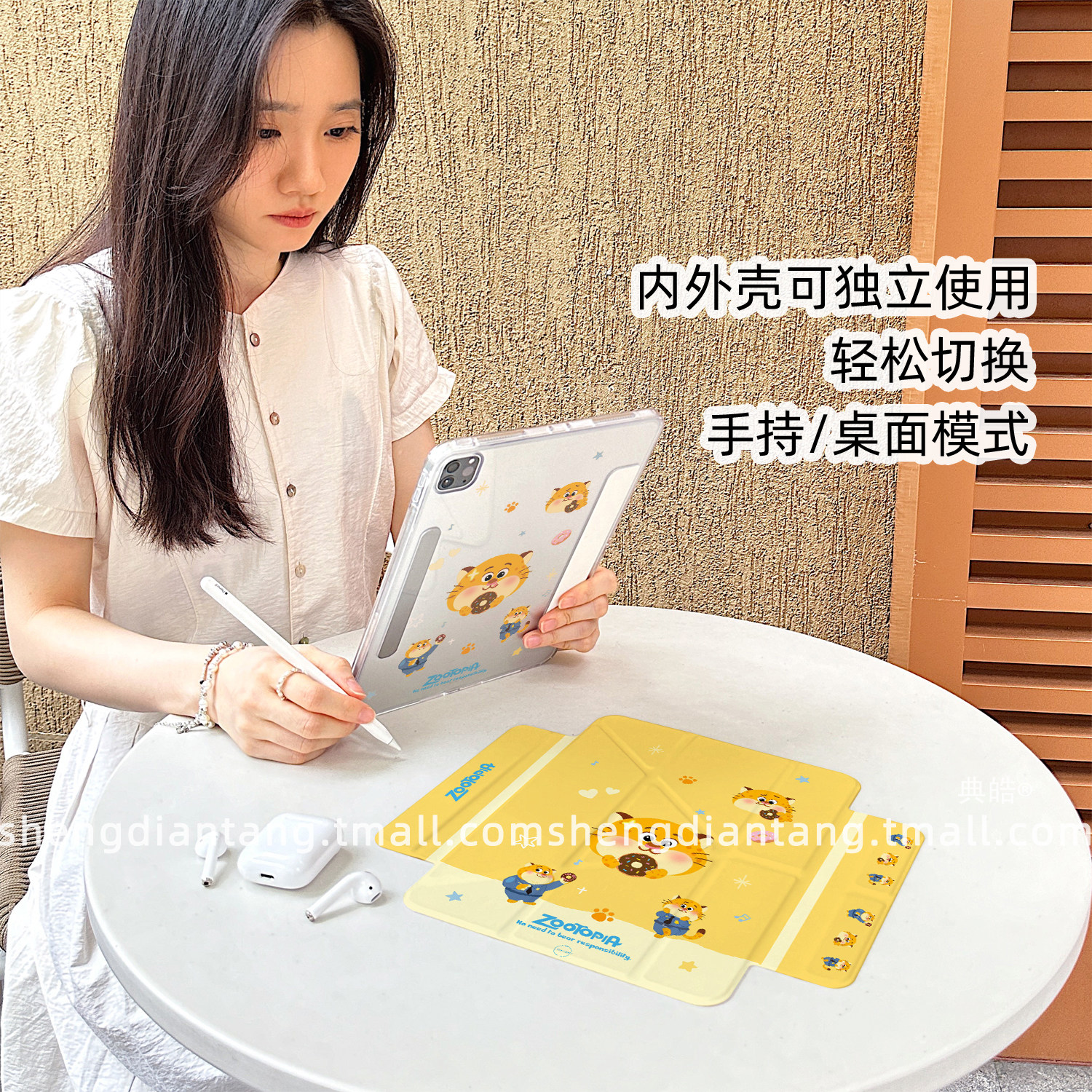 📚 卡通猎豹本杰明Y型磁吸可拆分适用苹果iPad11保护壳2025新款iPadAir7/6保护套平板10代Pro11寸mini7防弯女款