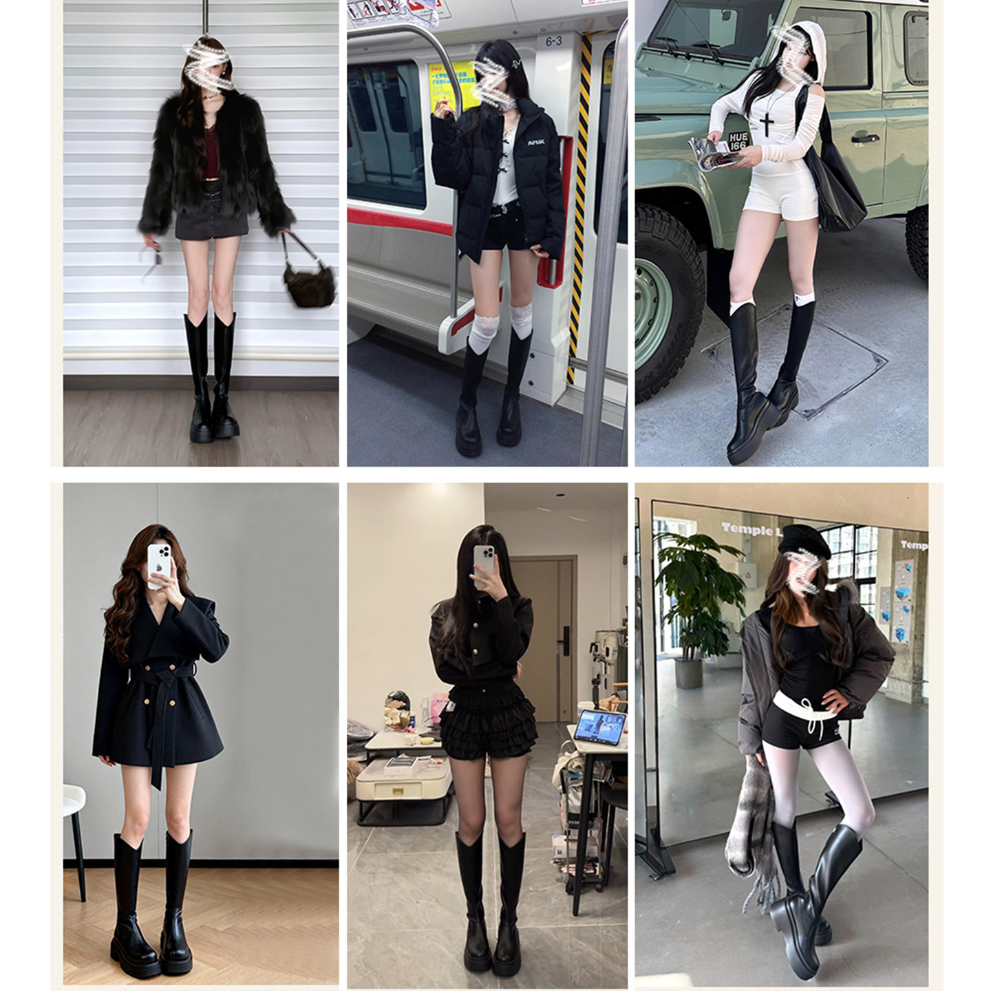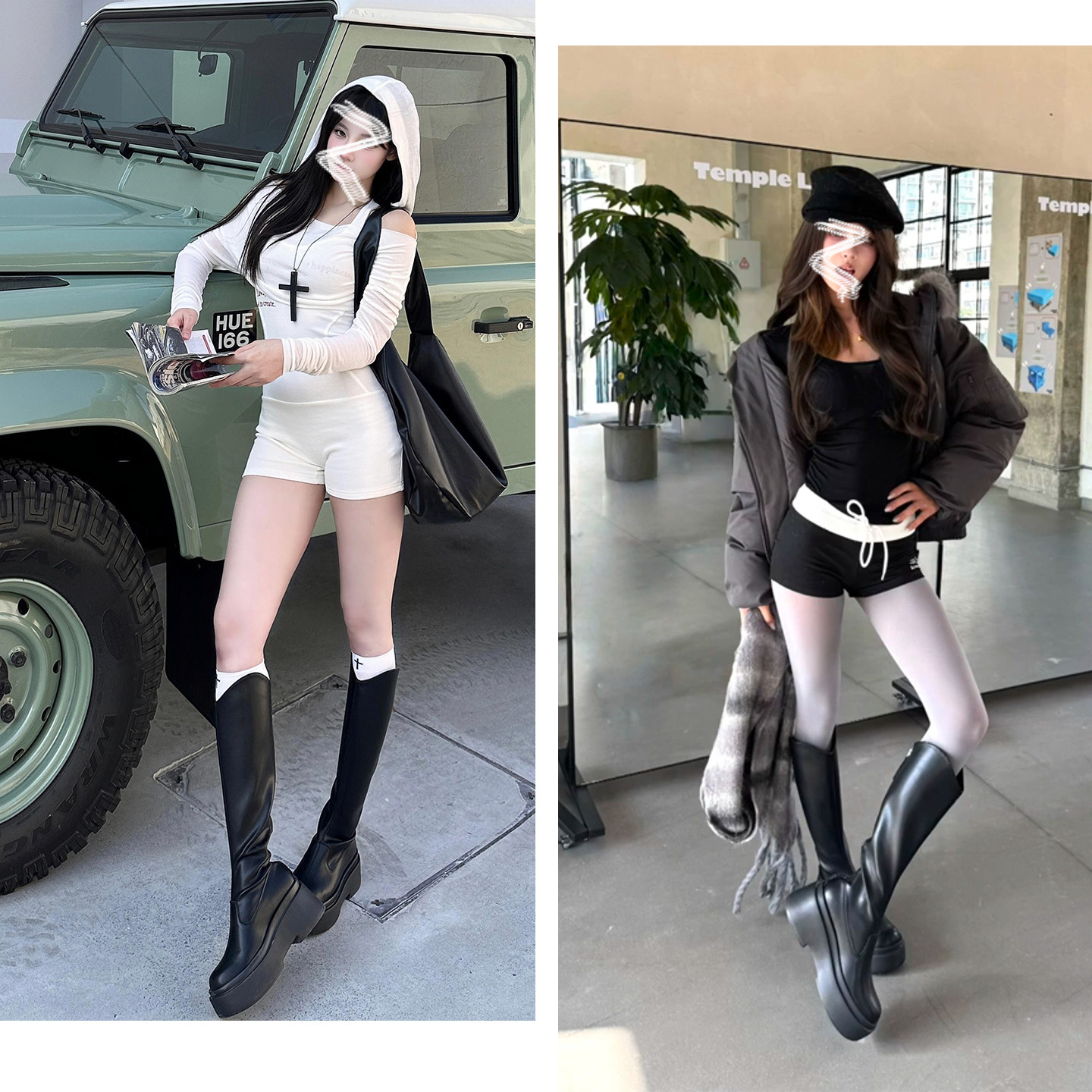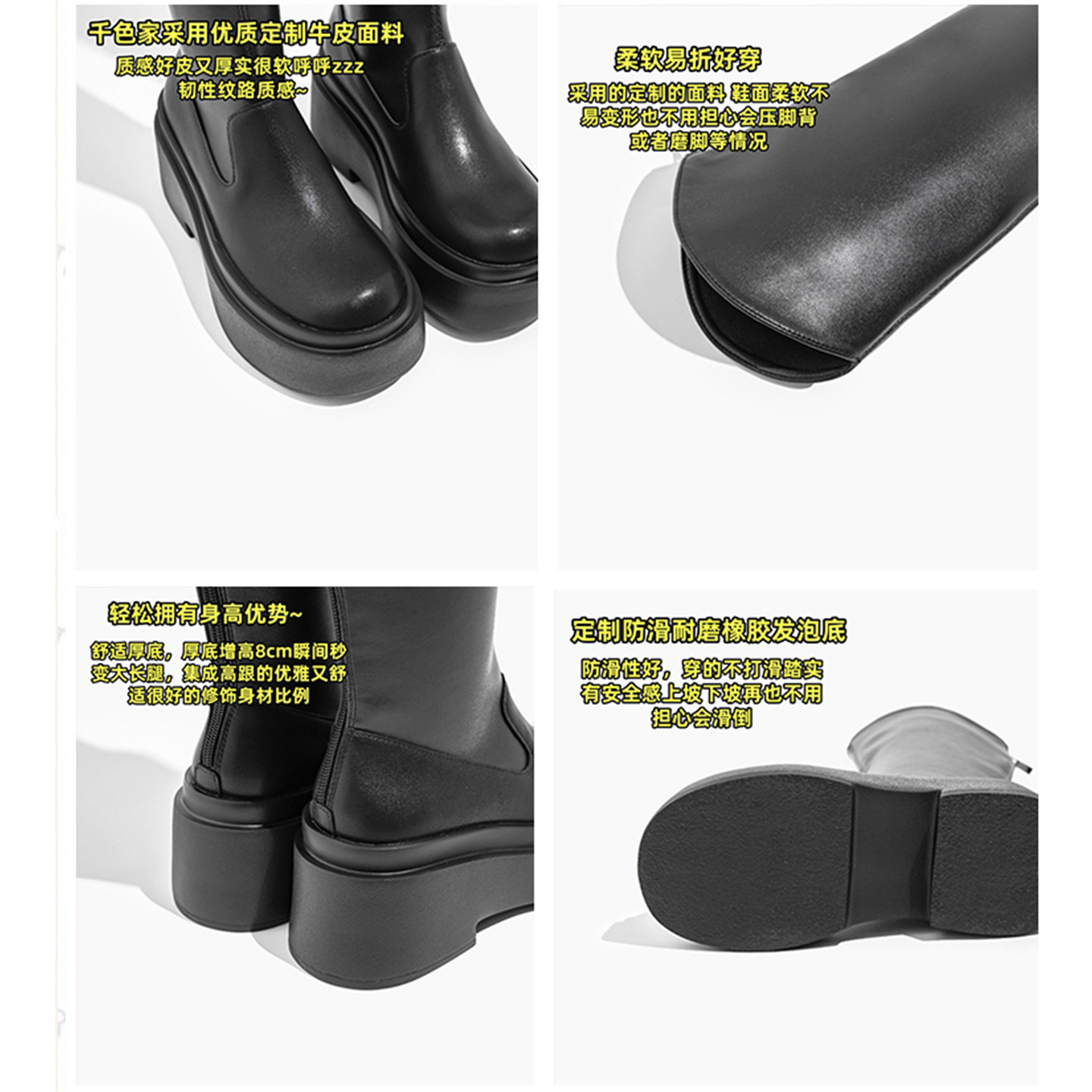 📚 羊皮版~黑色厚底长筒靴女2025秋冬新款增高瘦瘦靴高筒v口骑士靴