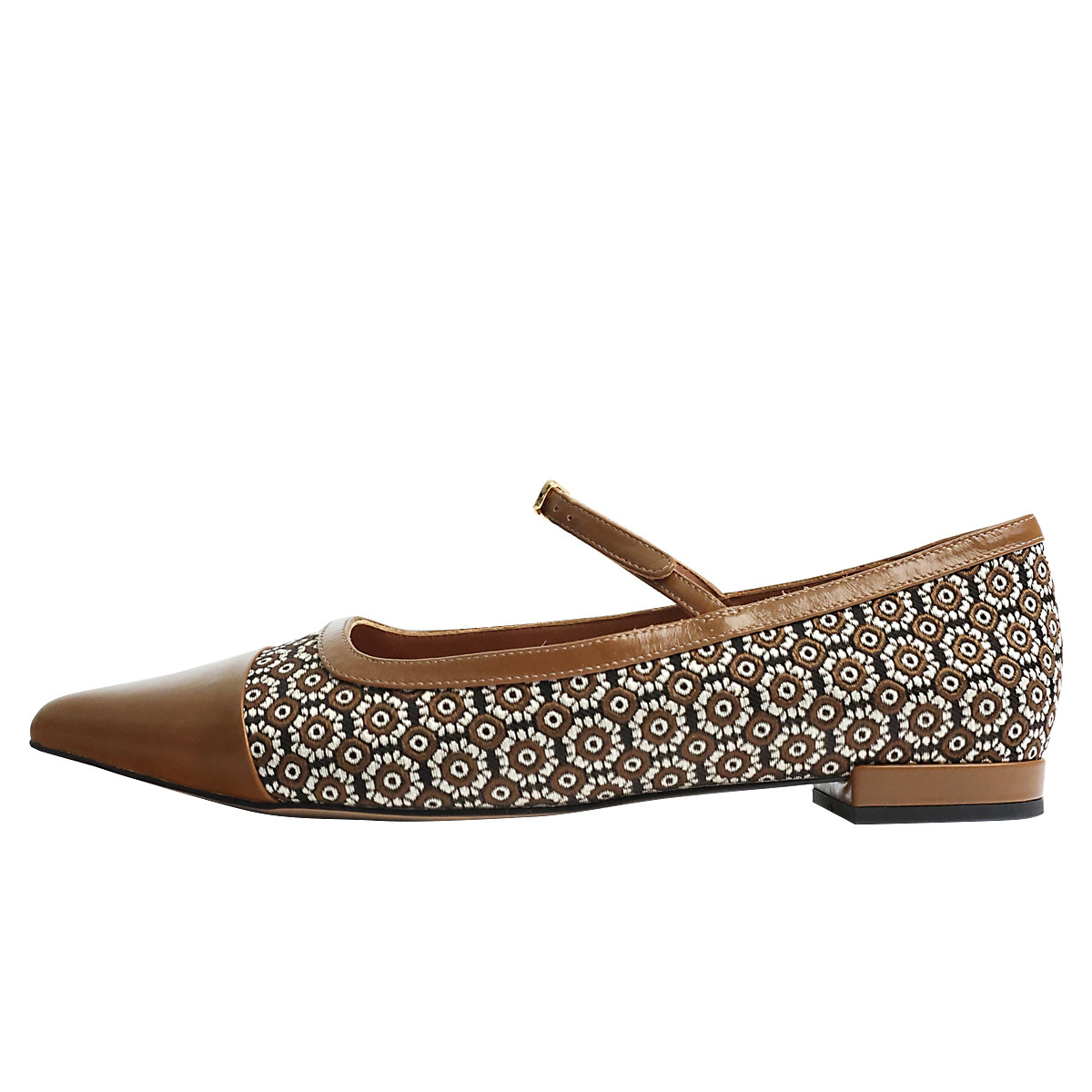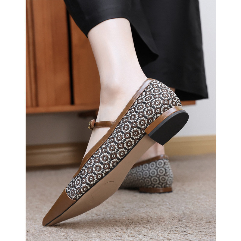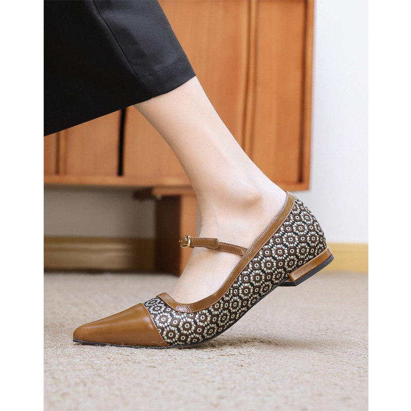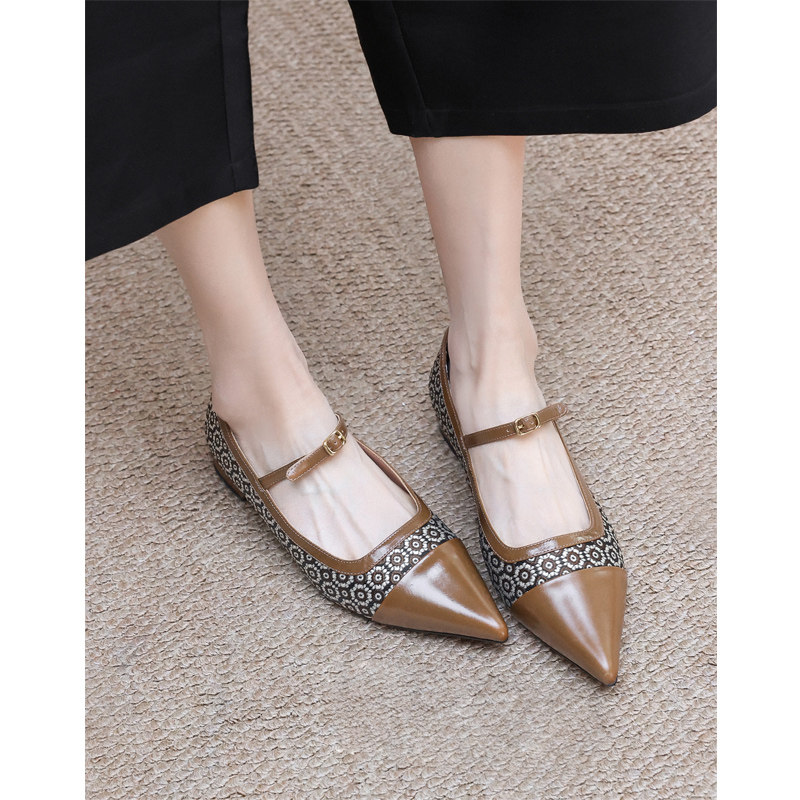 📚 KAKA法单精奢油润胎牛皮向阳花尖头浅口一字扣带淑女平底玛丽珍鞋