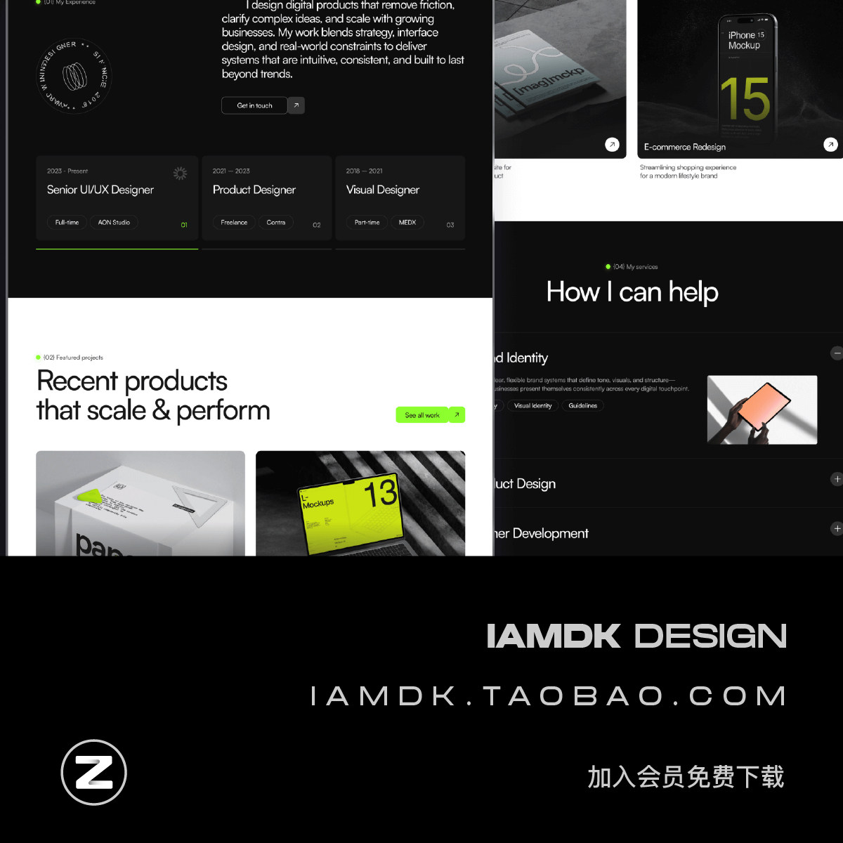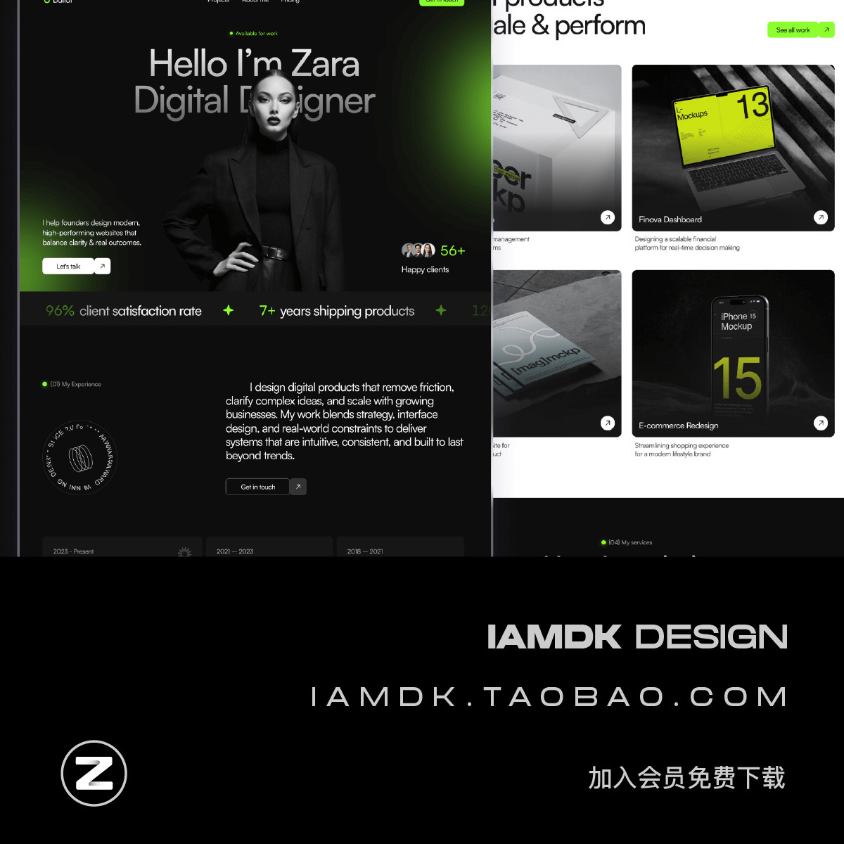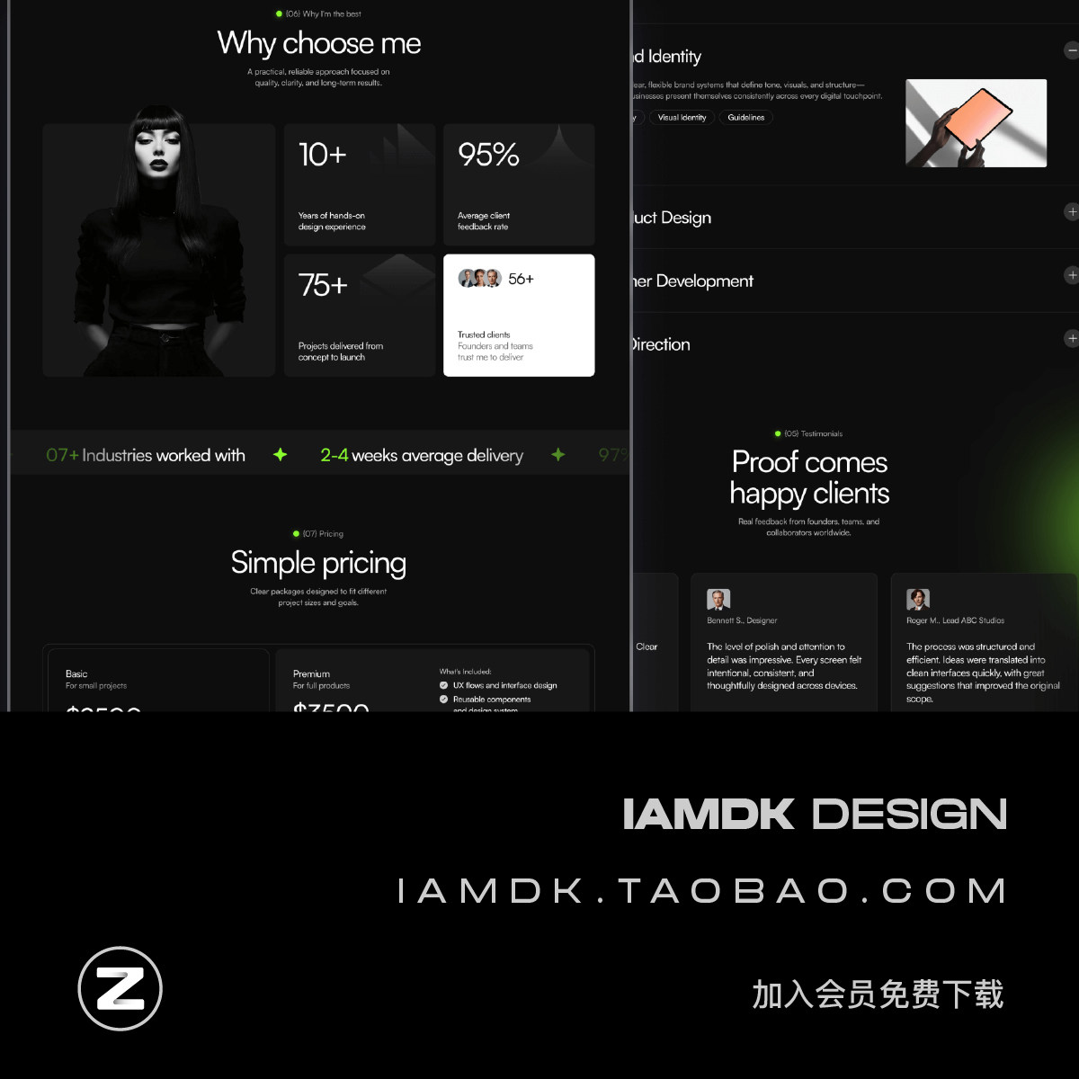 📚 高端暗调个人摄影设计师案例作品集用户ui界面排版framer模板素材