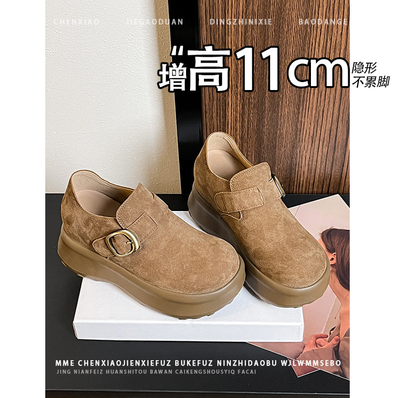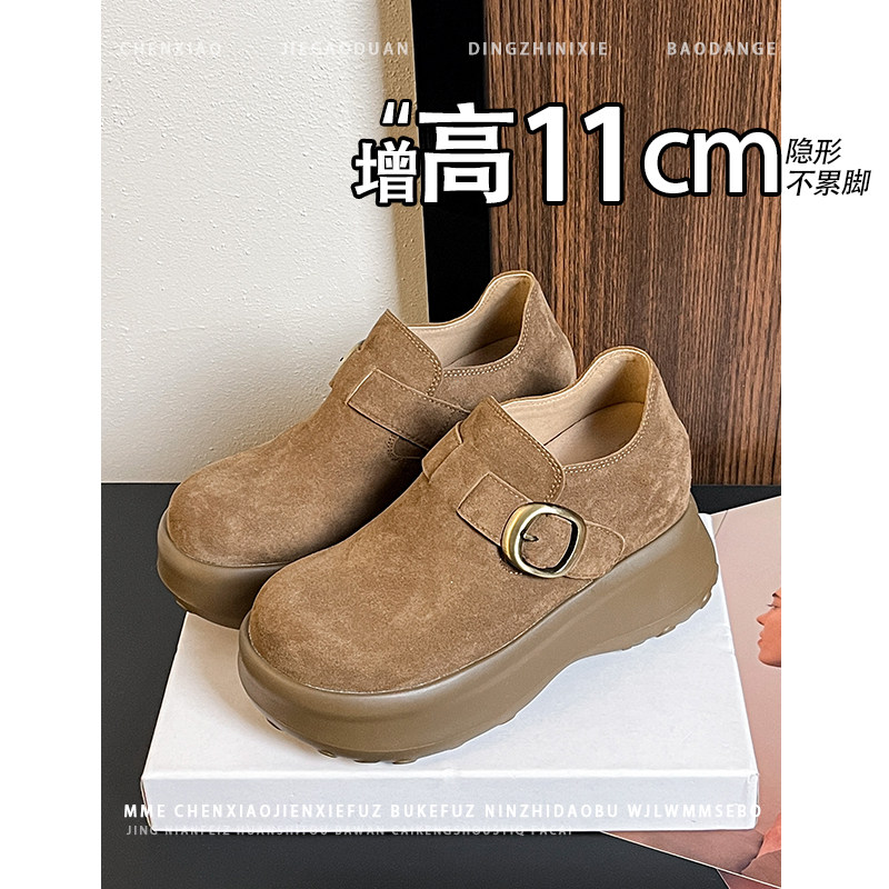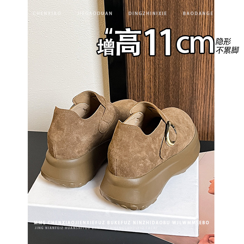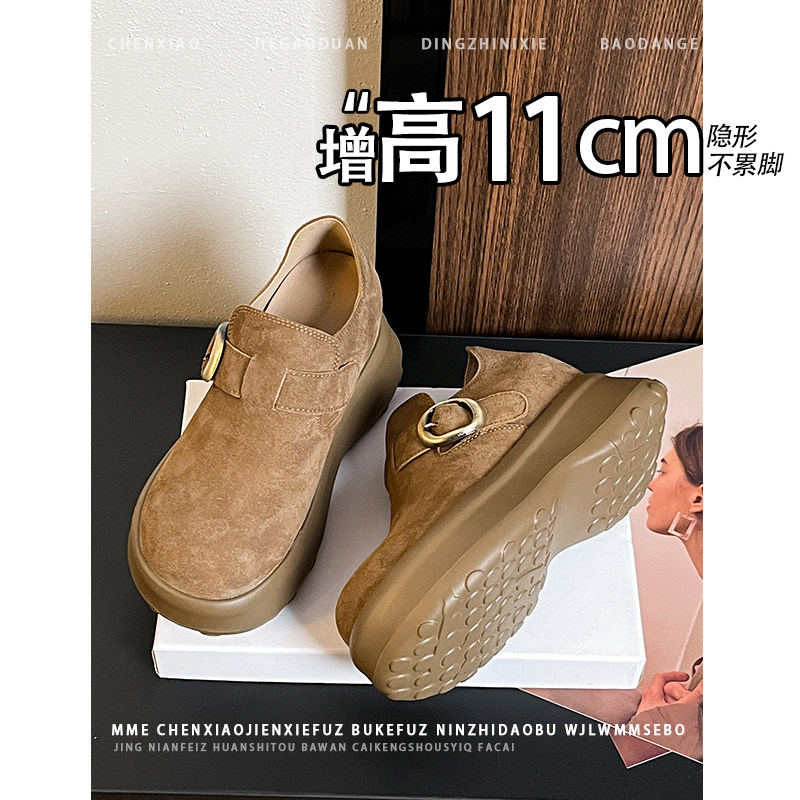 📚 隐形内增高11CM!小个子圆头绒面勃肯鞋2026春季新款套脚单鞋女