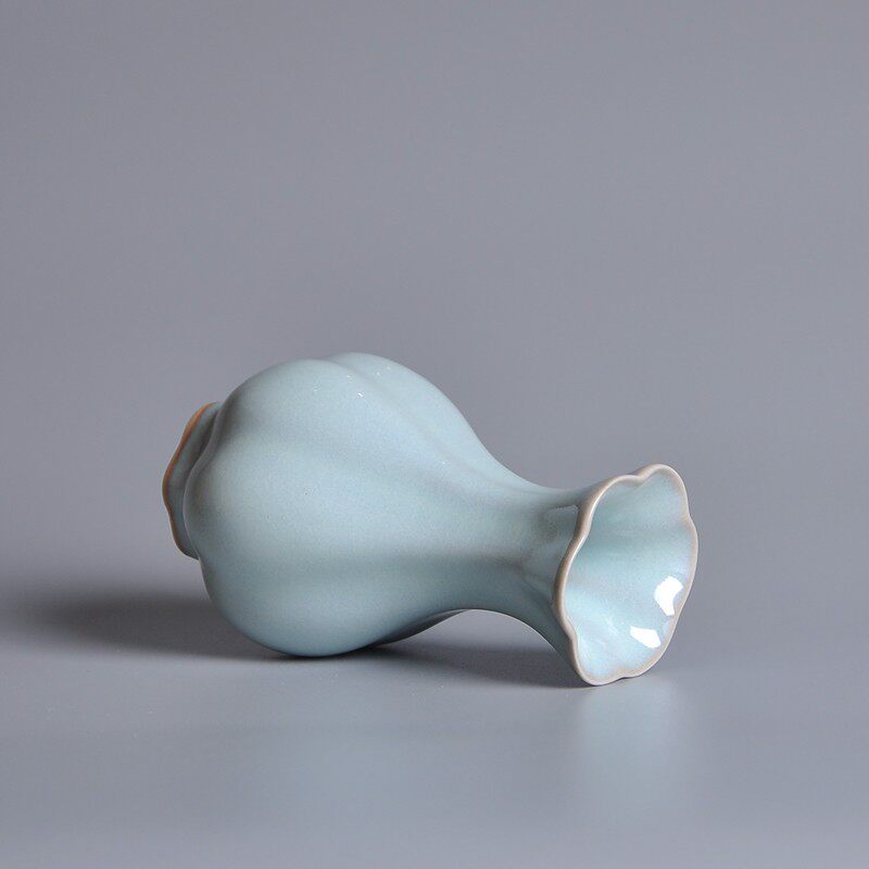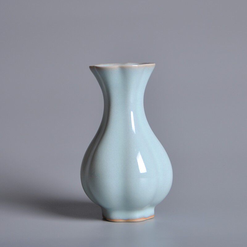 📚 宋代传世瓶 汝瓷海棠瓶天青釉 原产地汝窑 花瓶陶瓷摆件花器青瓷