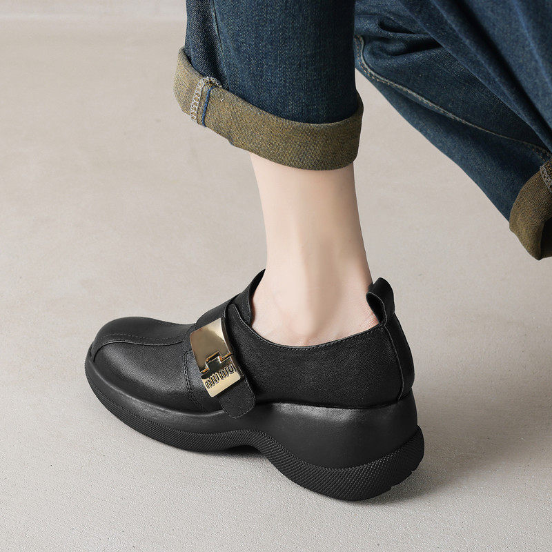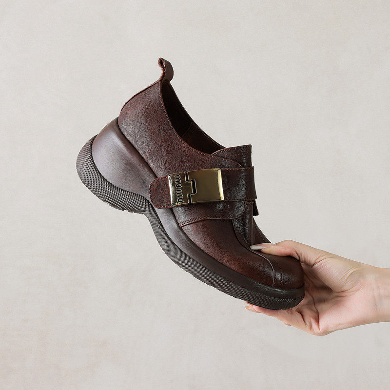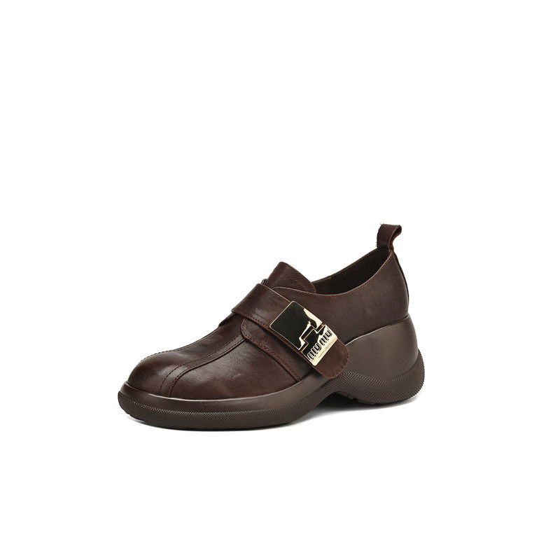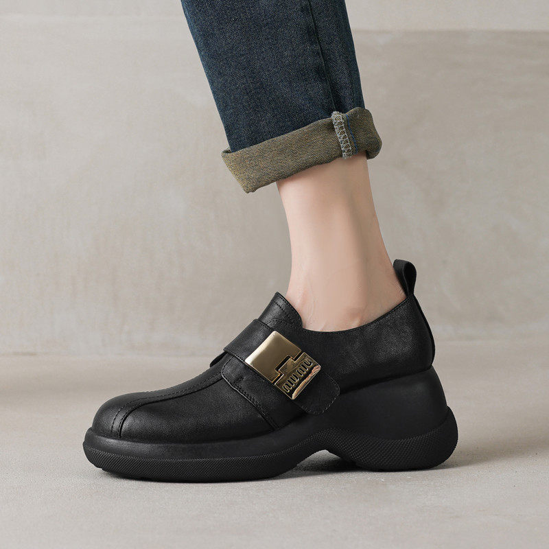 📚 6cm真皮厚底圆头显瘦英伦风小皮鞋女坡跟松糕复古皮带扣懒人单鞋