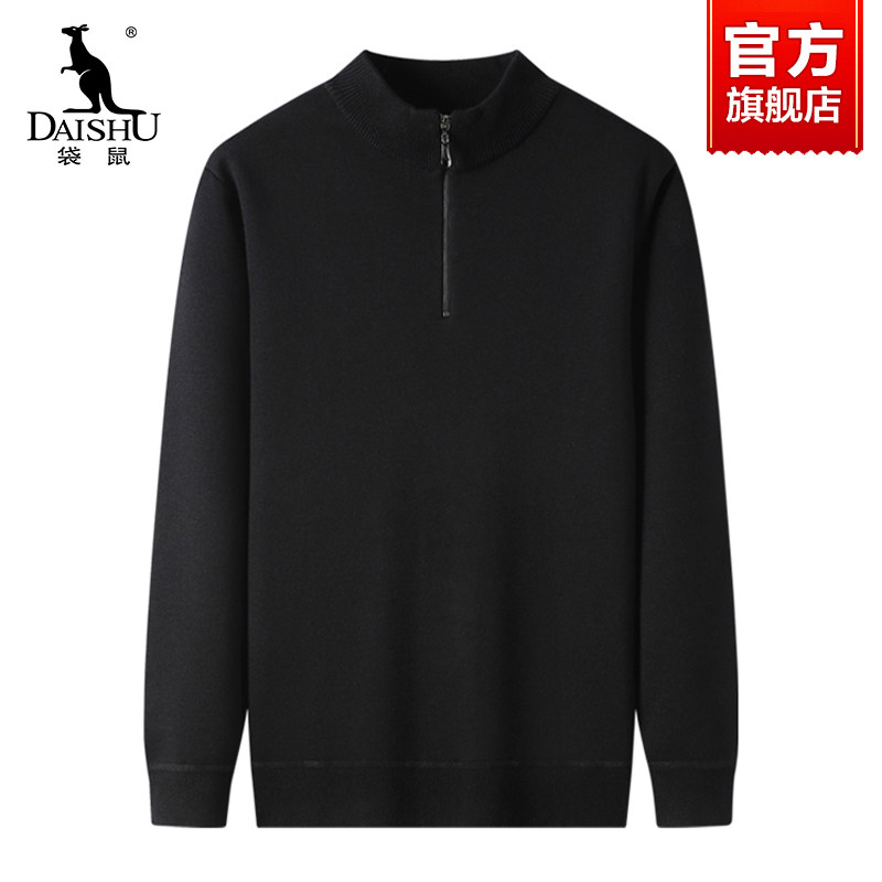 📚 袋鼠加绒加厚爸爸毛衣拉链领口男士秋冬季针织打底衫保暖内搭上衣