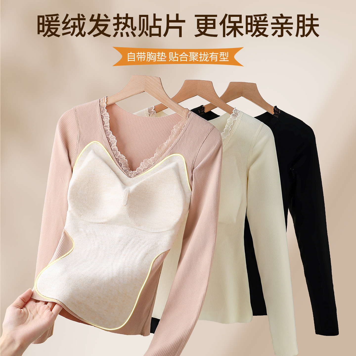 📚 保暖内搭内衣女2026新款带胸垫加绒加厚打底衫上衣秋衣秋裤女套装