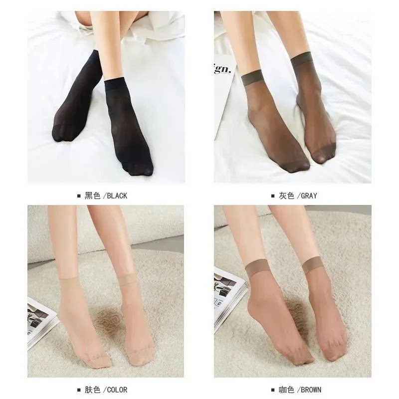 📚 浪莎短丝袜女士夏季薄款黑肉色菠萝袜防滑防勾丝隐形中筒水晶丝袜