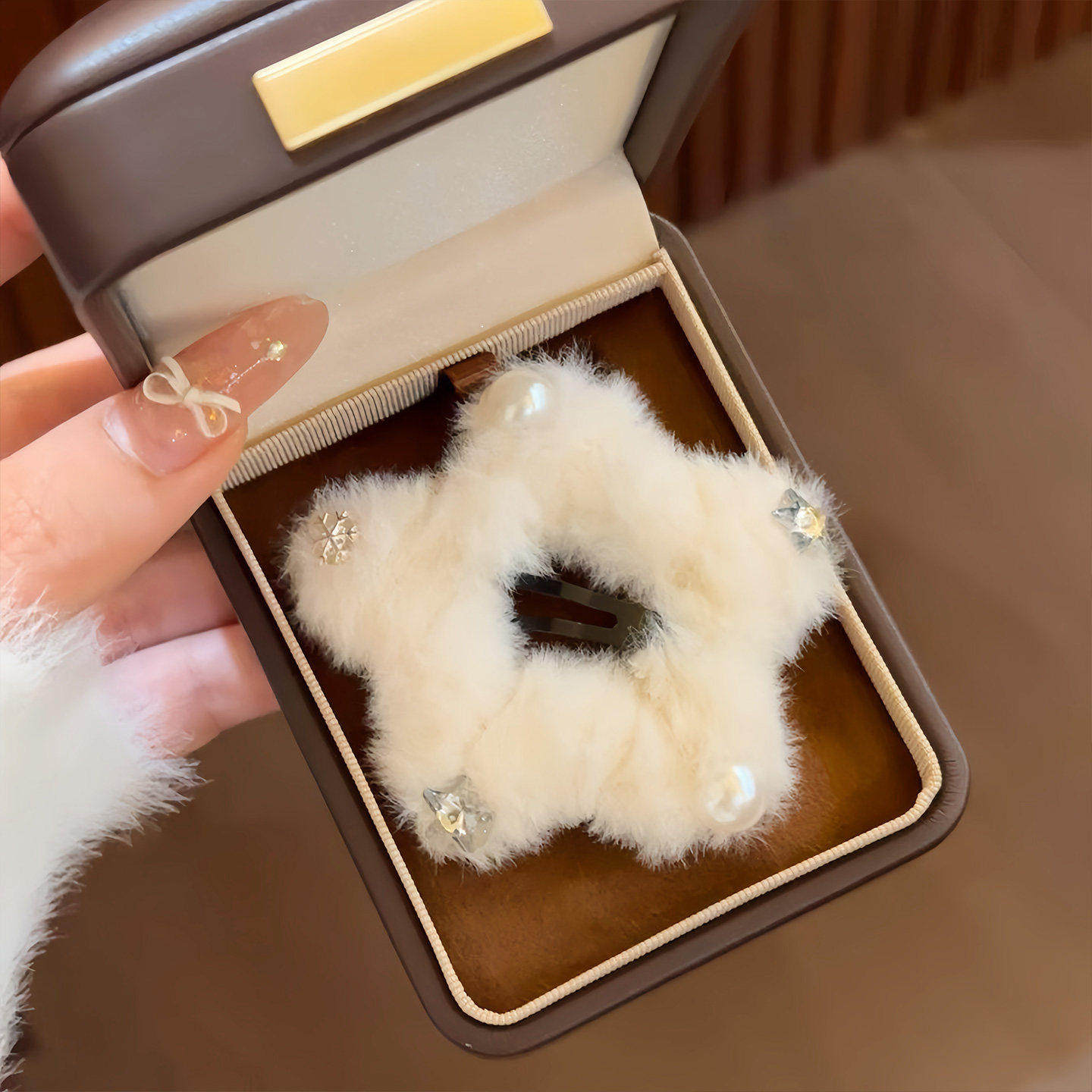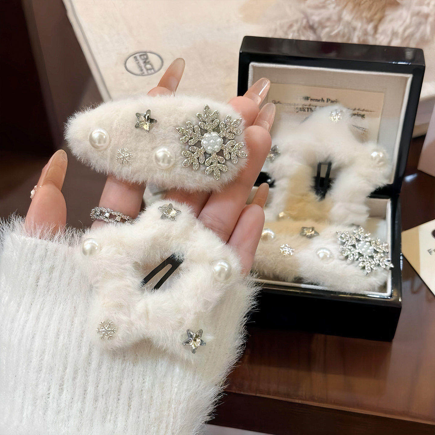 📚 冬日来信秋冬毛绒雪花星星发夹侧边氛围甜美可爱韩系发卡刘海边夹