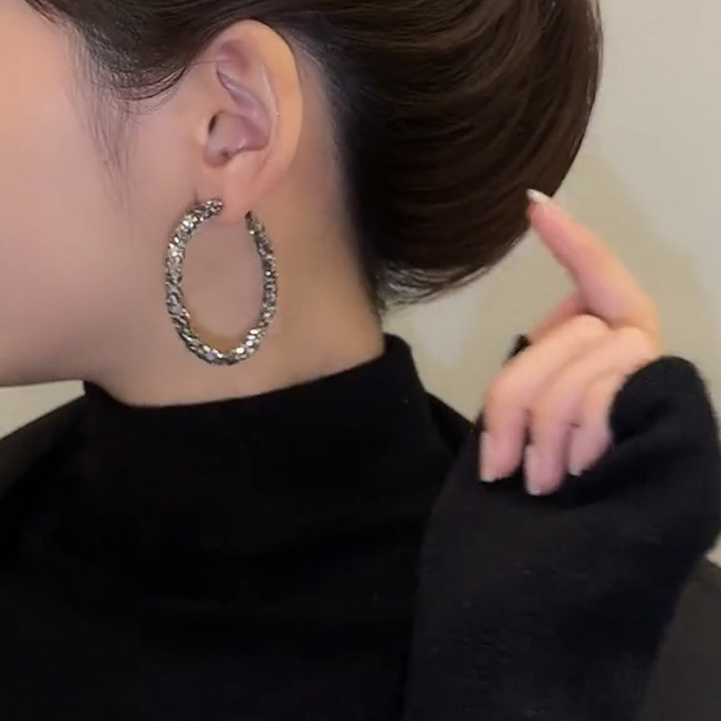 📚 新款时尚韩国耳圈夸张潮流个性闪亮大圆圈耳环气质银针耳钉耳坠女