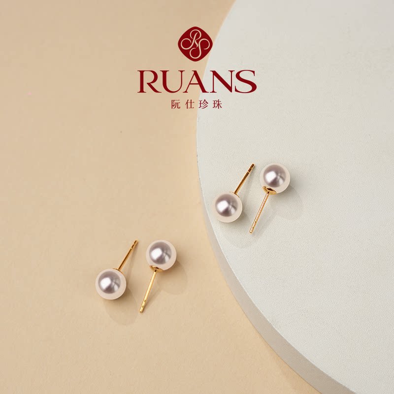 📚 RUANS/阮仕天然海水akoya珍珠耳钉女18K金耳环高亮小灯泡珍珠耳饰