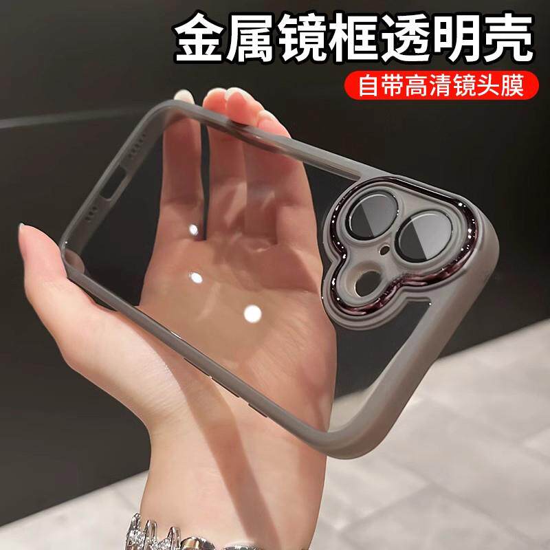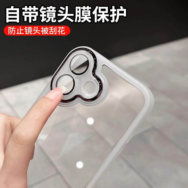 📚 磨砂边框透明小众适用苹果16手机壳电镀超薄iPhone15ProMax网红ip14硅胶软壳13全包自带镜头膜男女高级感防摔