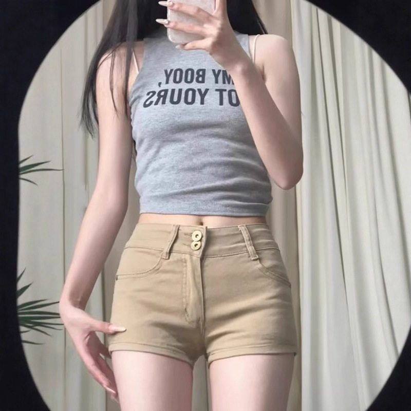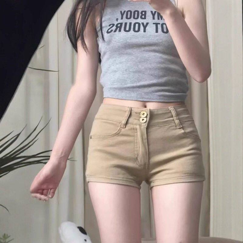 📚 a卡其色辣妹牛仔短裤夏季裤子休闲字包臀性感女外超短穿热裤显瘦