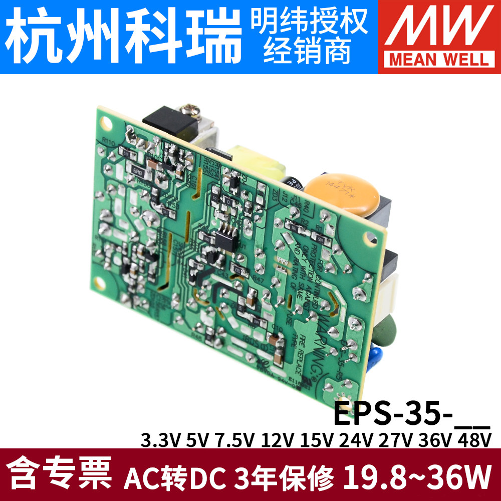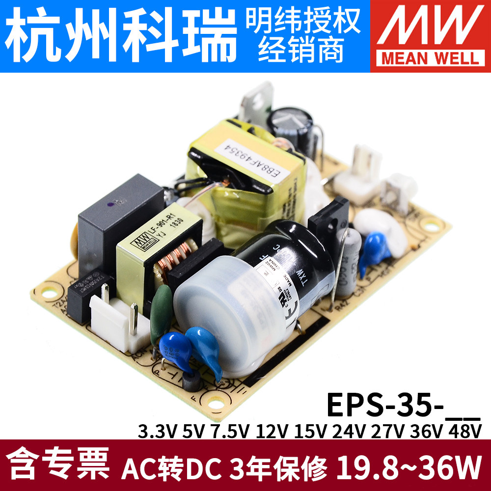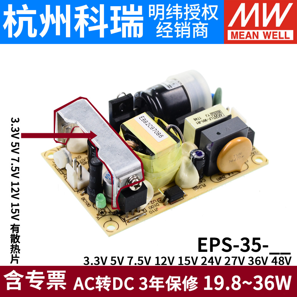 📚 明纬PCB电源EPS-35-3.3/5/7.5/12/15/24/27/36/48V低空耗35W替PS