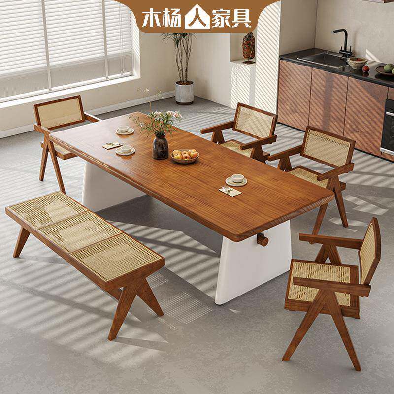 📚 木LH240710杨小人实户木餐桌带椅子家用日藤编饭桌型办式公桌民宿