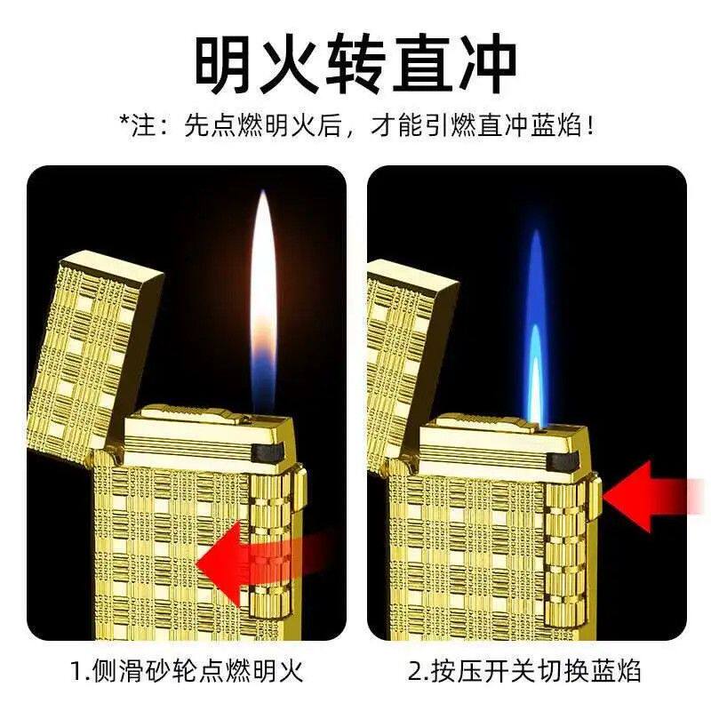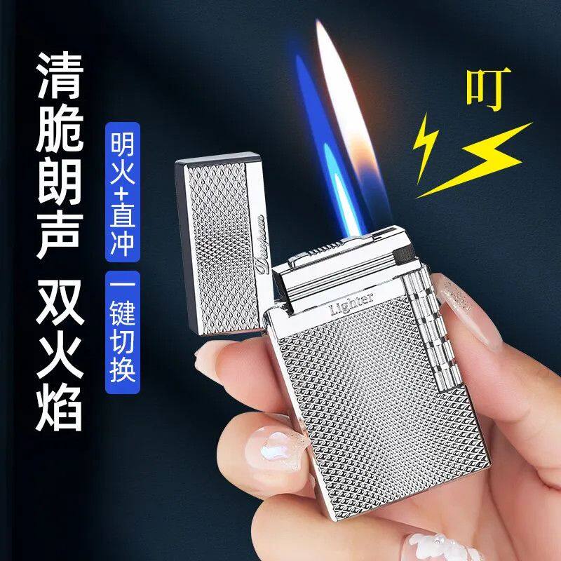 📚 高档朗声钢音双火防风打火机个性创意侧滑轮点火高颜值礼物送男友