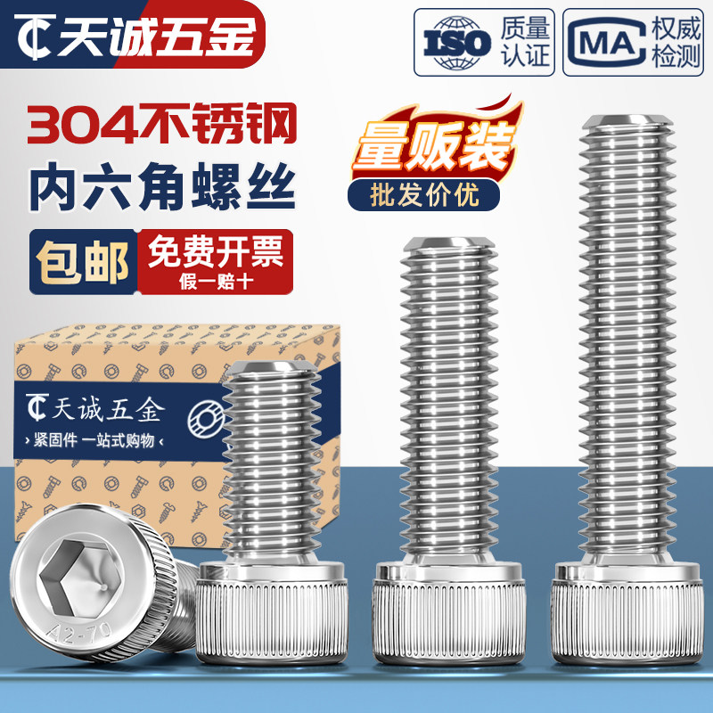 📚 M12M14M16M18M20M24mm 304不锈钢内六角螺丝钉杯头螺栓圆柱头加长