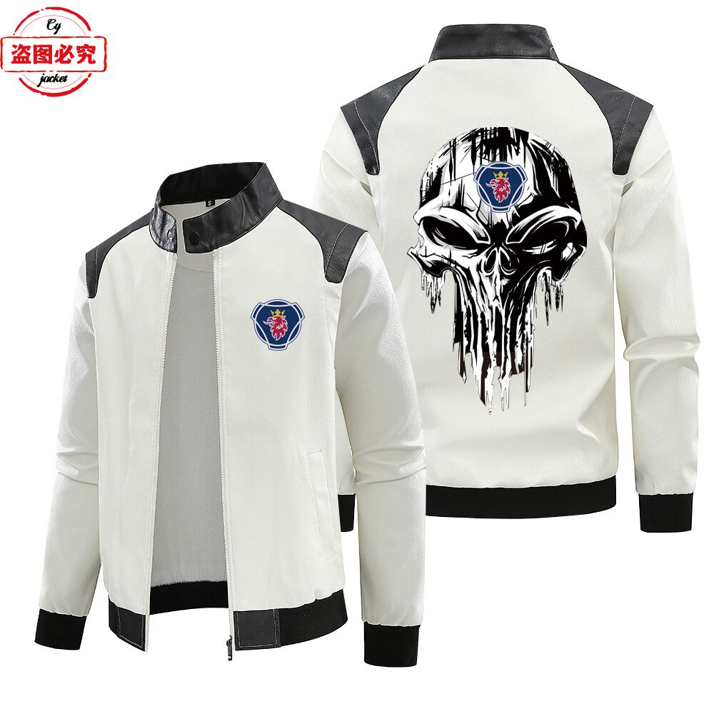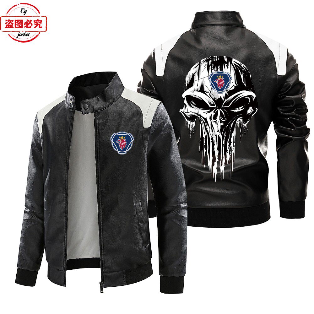 📚 斯堪尼亚重卡货车车标皮夹克复古水洗pu皮衣男夹克斯堪尼亚工作服