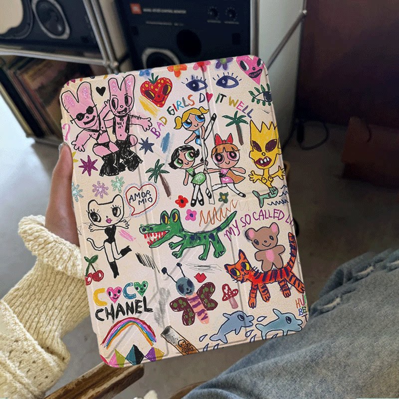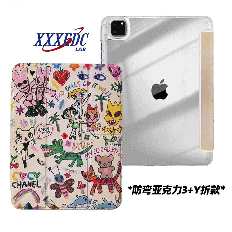 📚 原创小众高级感艺术涂鸦适用11代2026款air8ipadpro11寸三折ipad壳防弯亚克力平板壳9代10.2寸air4/5带笔槽