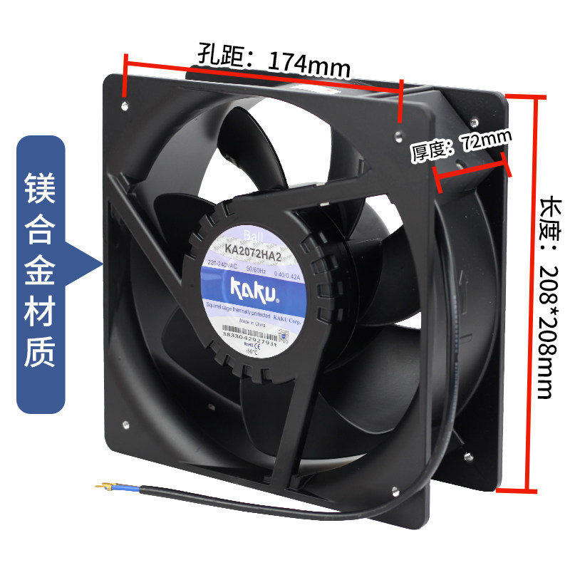 📚 丰陆耐高温KAKU卡固大风量KA2072HA2 AC220V交流轴流风机208*72mm