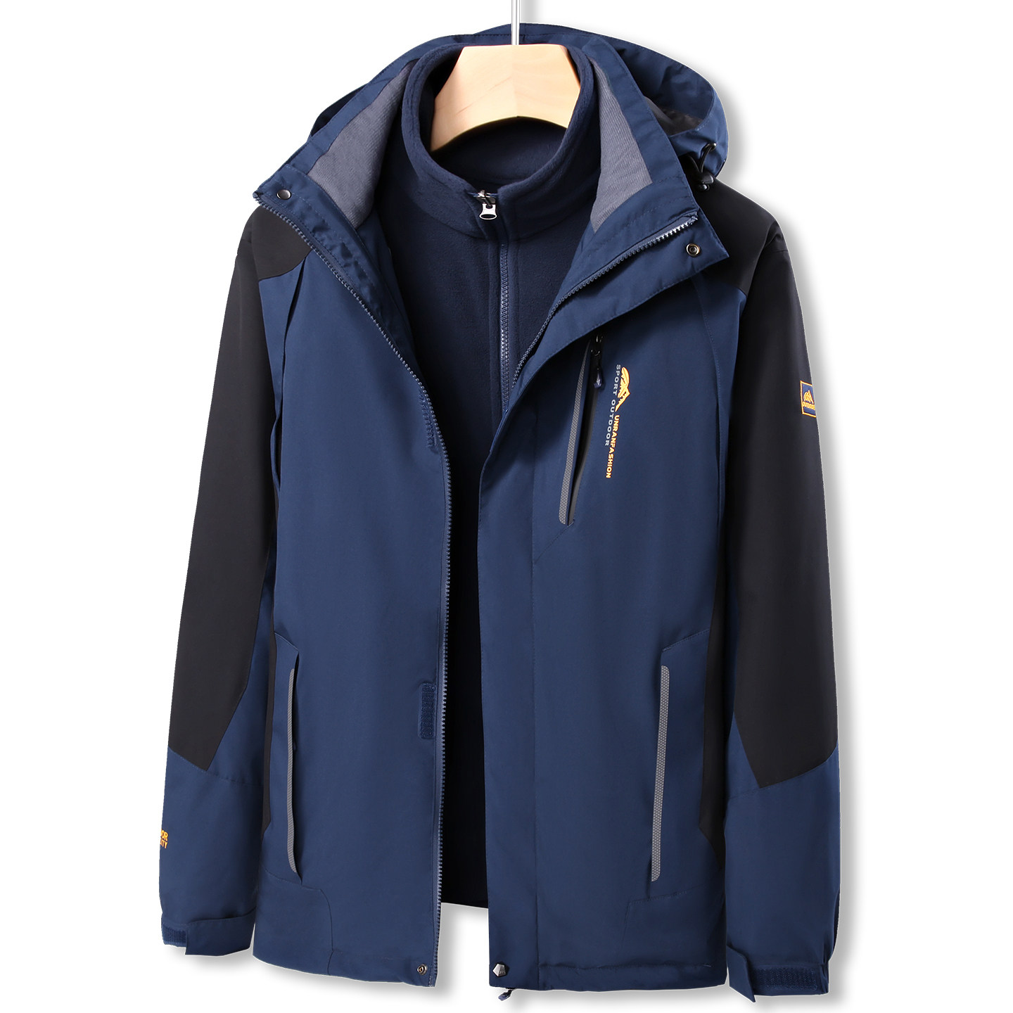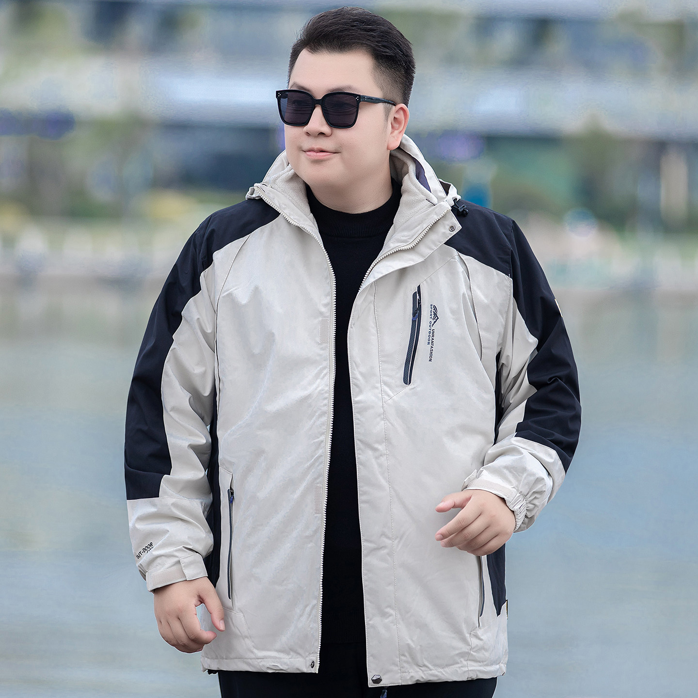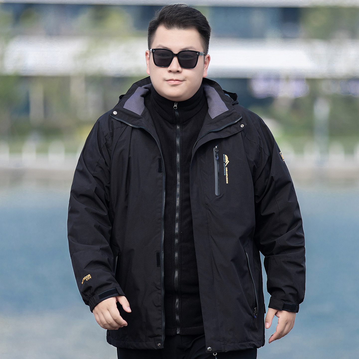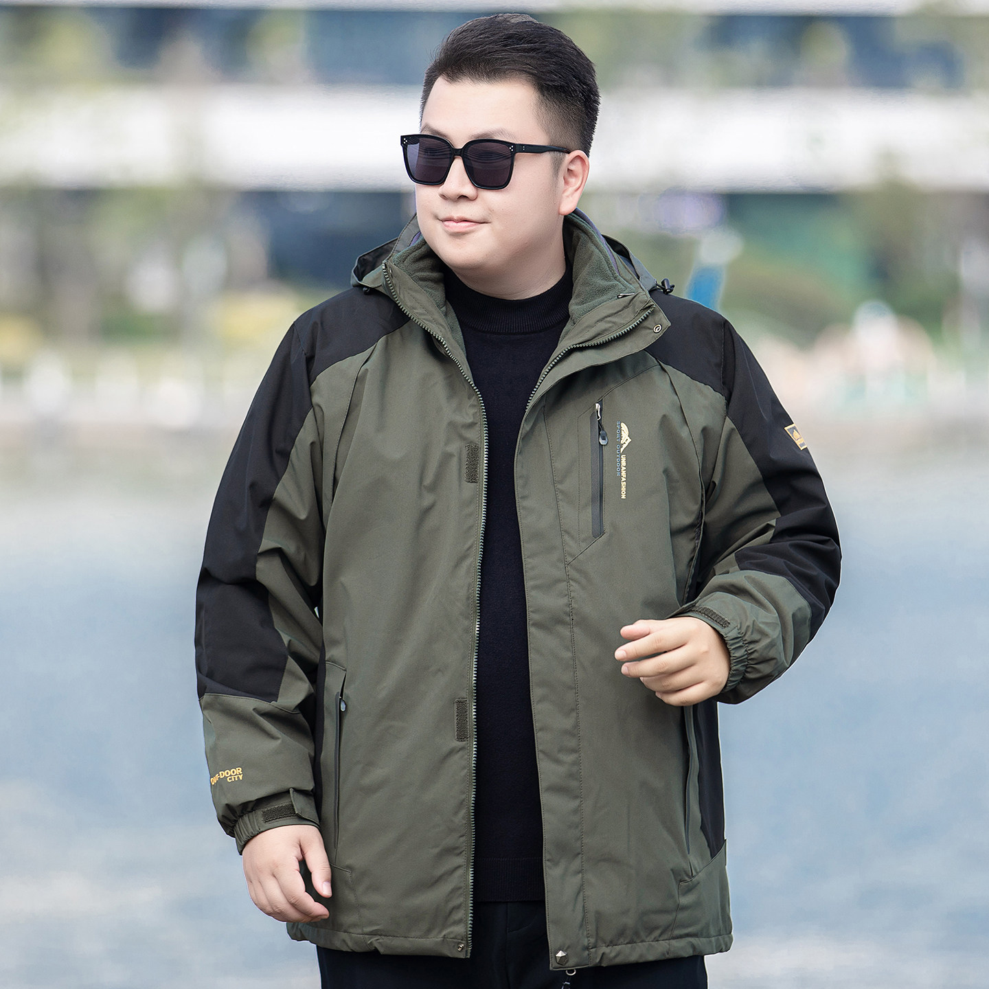 📚 秋冬季加大码男户外外套加绒夹克加肥加大可脱卸内胆两件套冲锋衣
