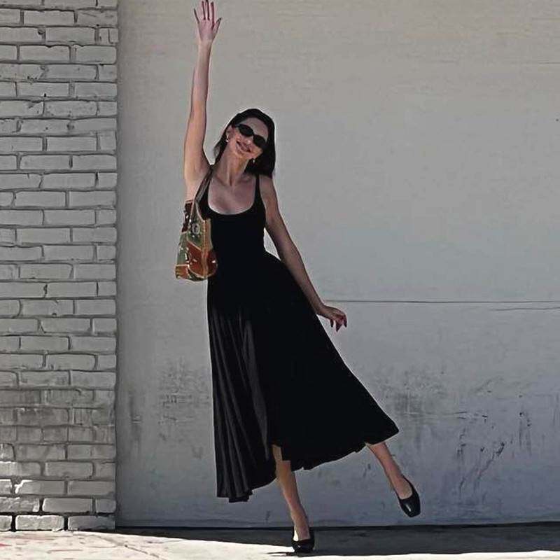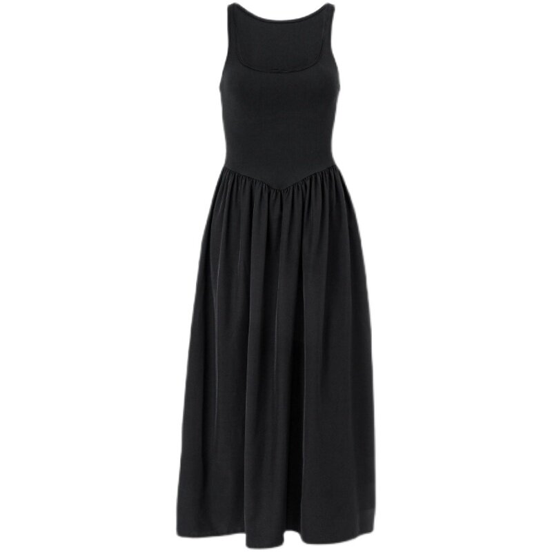 📚 Ahagaga 时尚收腰显瘦拼接黑色吊带长裙欧美性感露背吊带连衣裙女