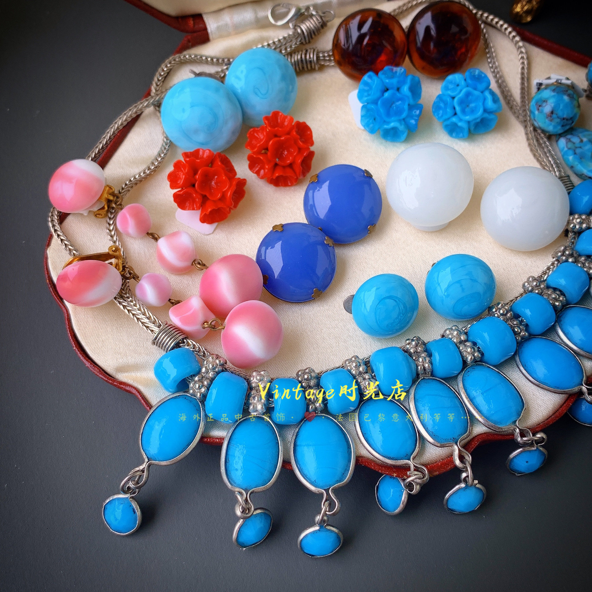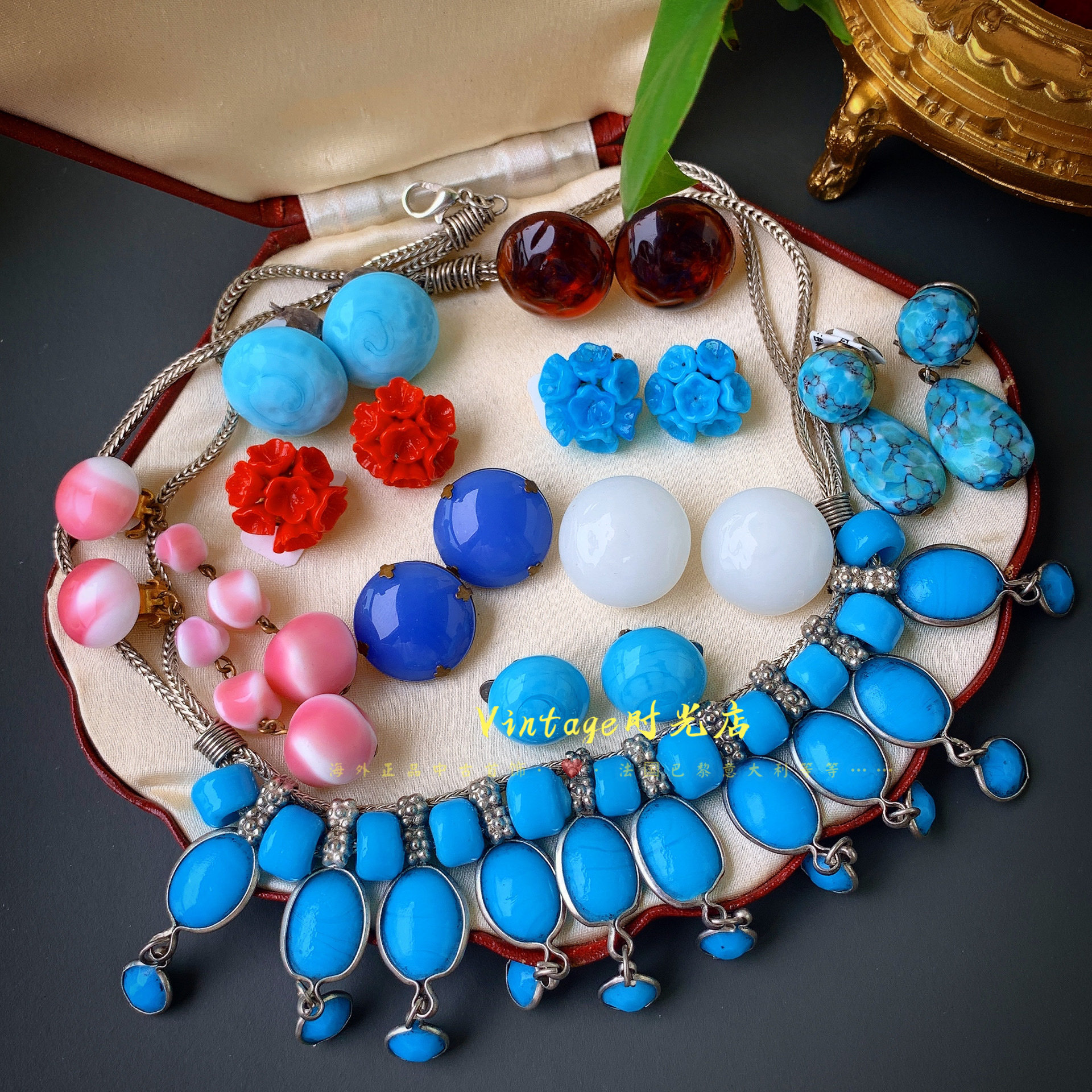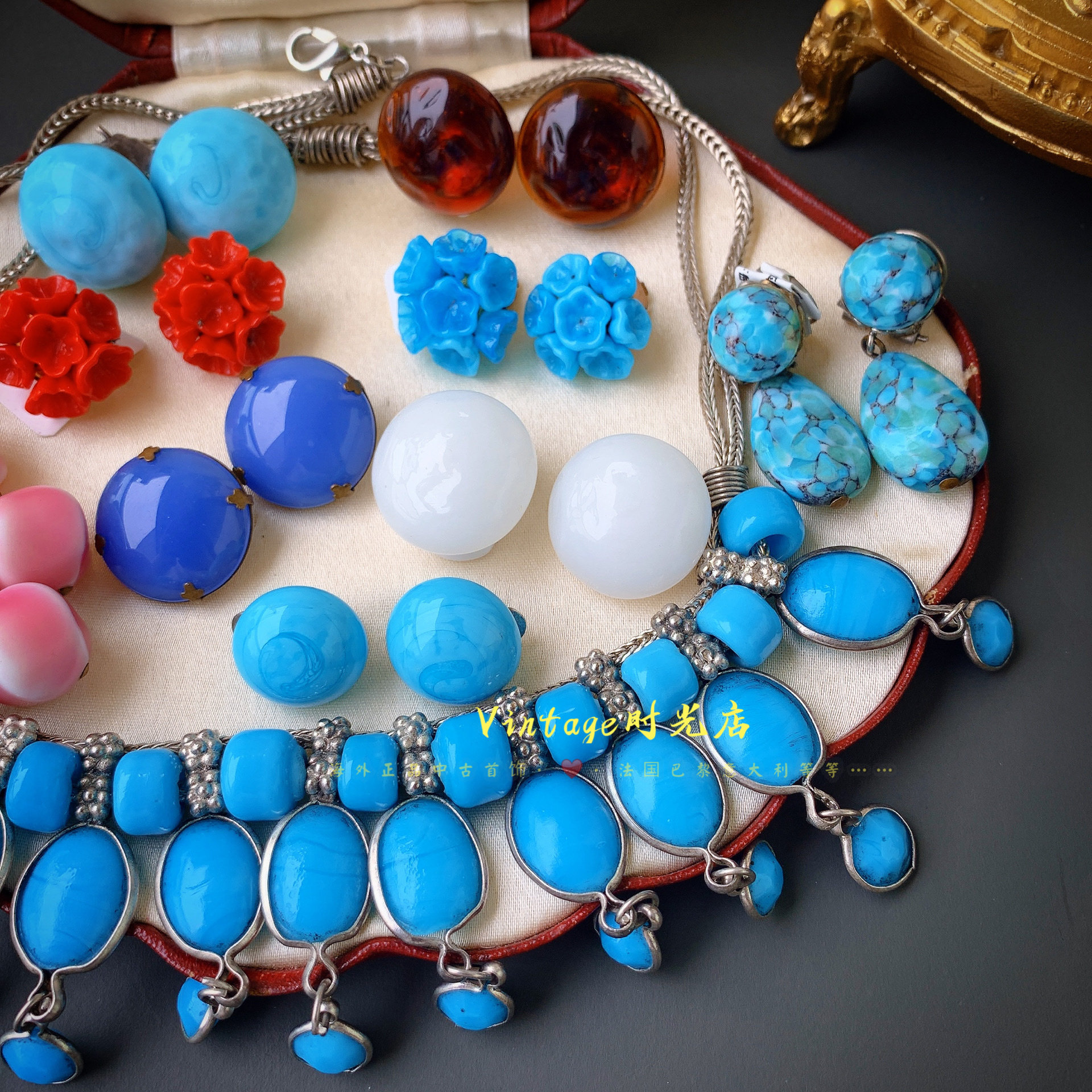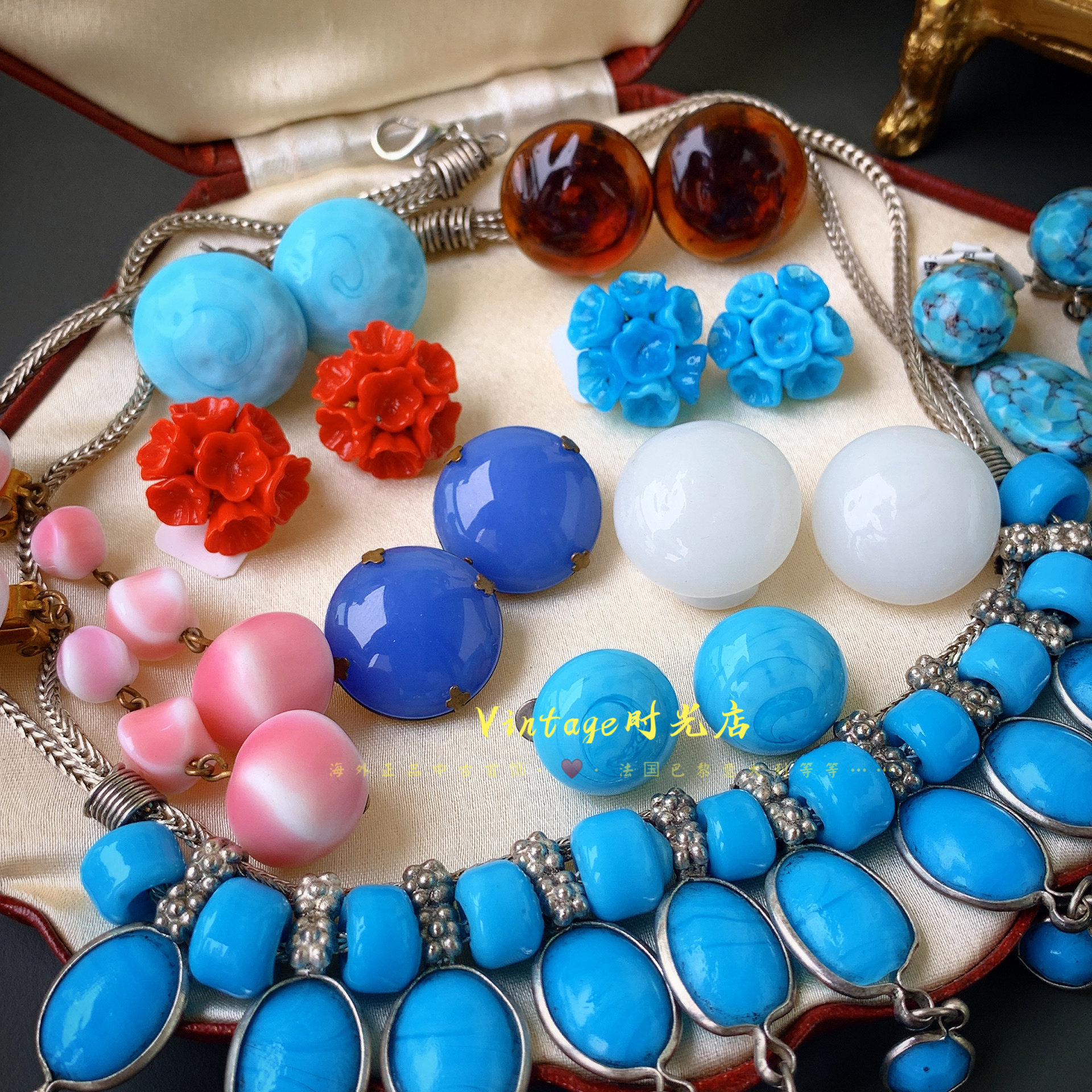 📚 法国耳环中古Vintage老琉璃复古LouisRousselet手工琉璃项链耳夹