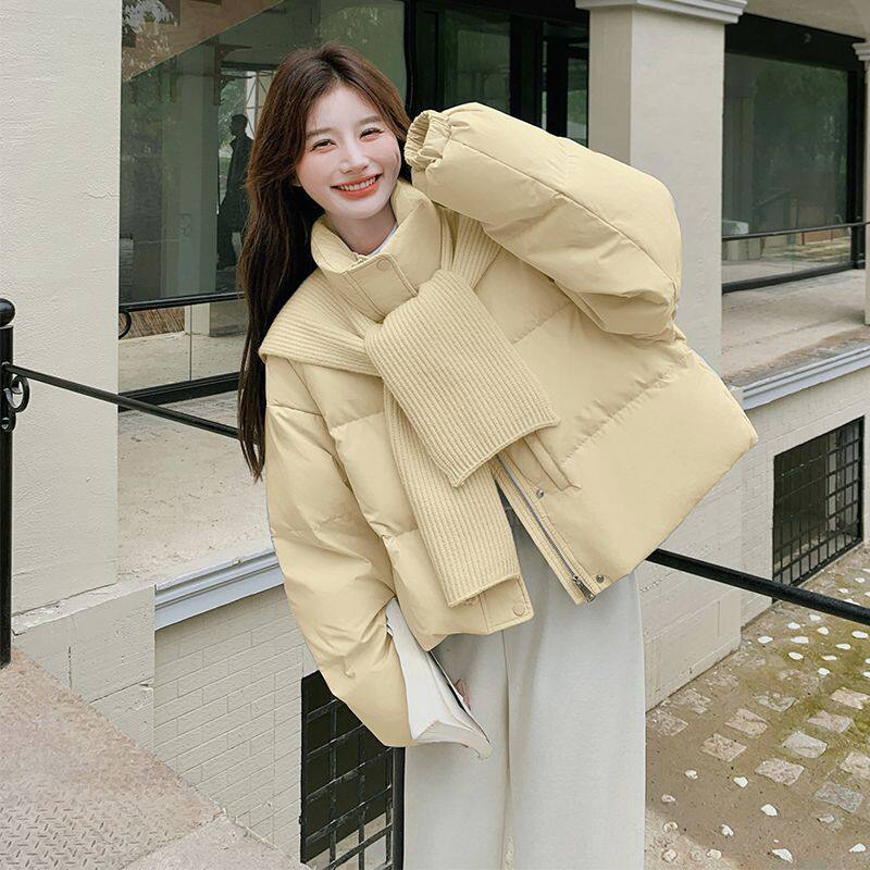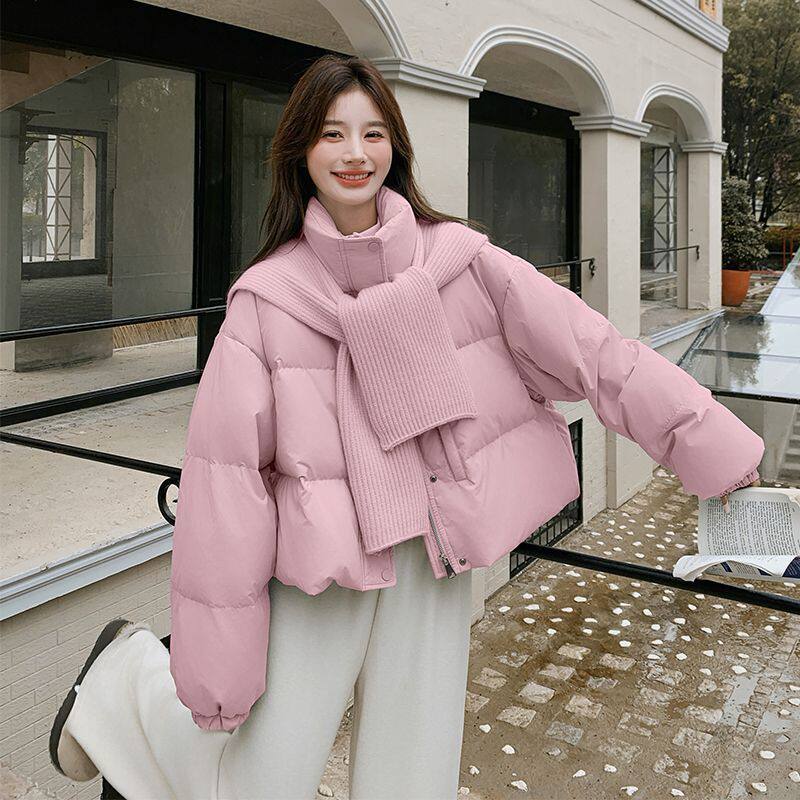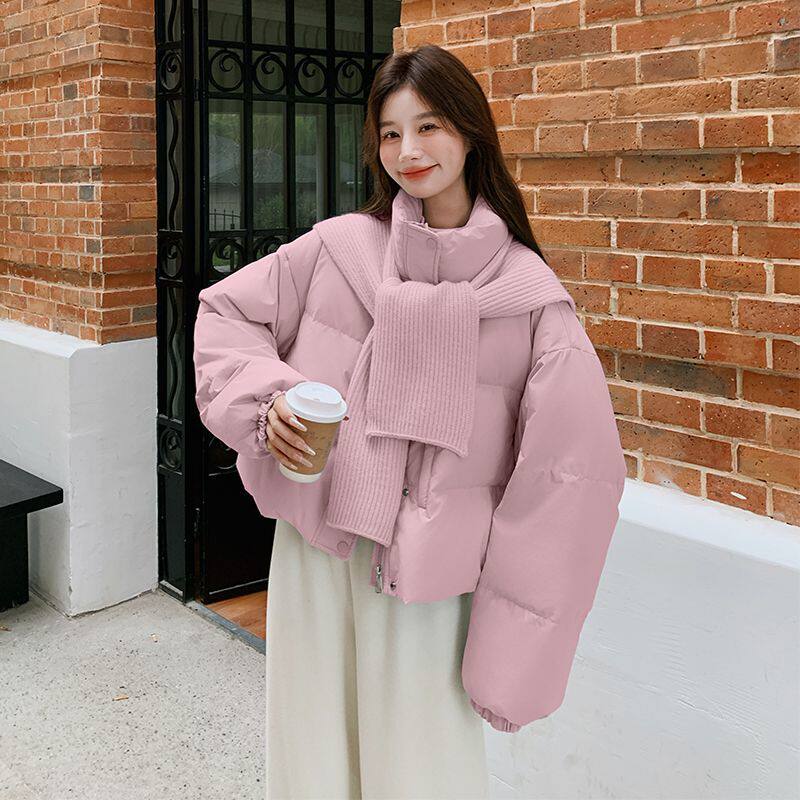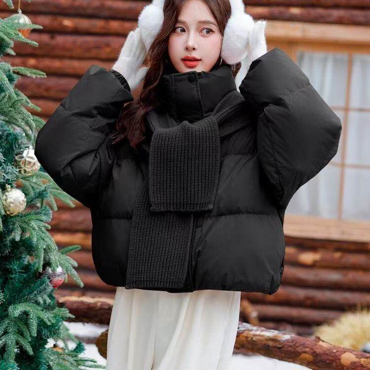 📚 小清新针织披肩立领短款羽绒棉服小个子加厚棉袄针织围巾加厚棉衣