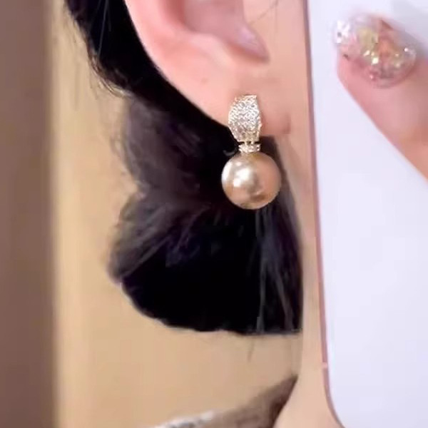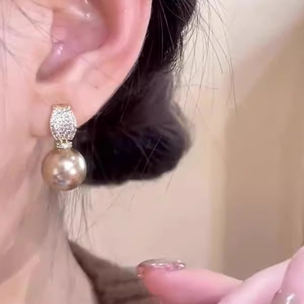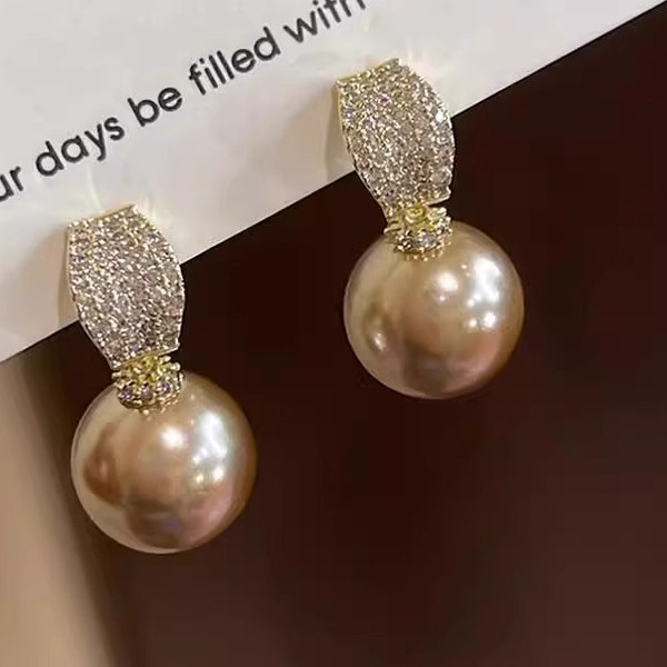 📚 MEILAIFUREN高端定制微镶满钻香槟金珠珠吊坠耳钉轻奢气质耳环女