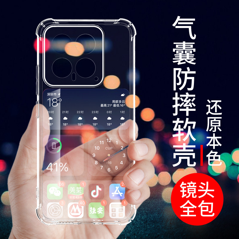 📚 希凯适用小米14手机壳防摔米14pro新款mi14透明套软xiaomi全包边气囊保护硅胶外壳14ultra男女创意简约支架潮