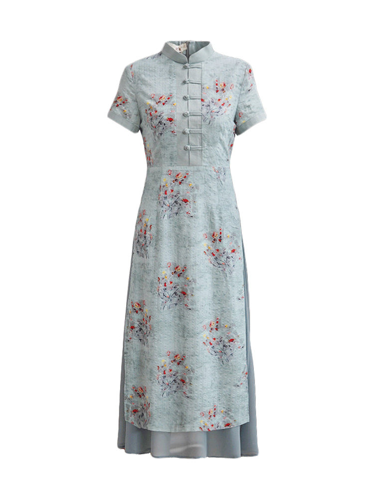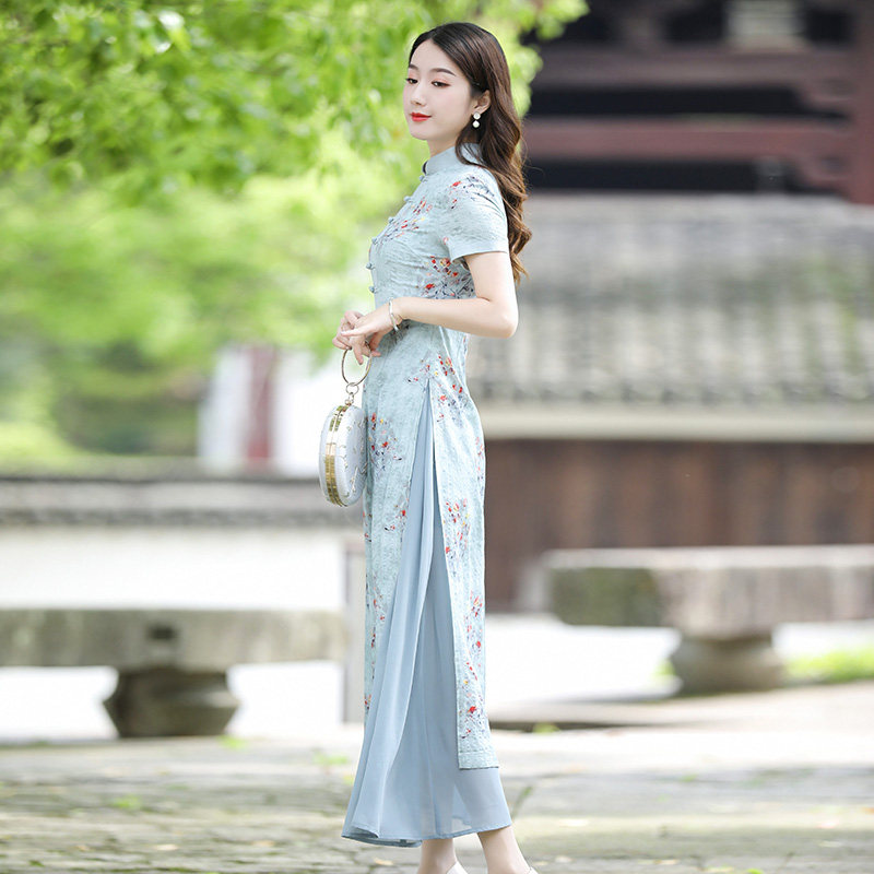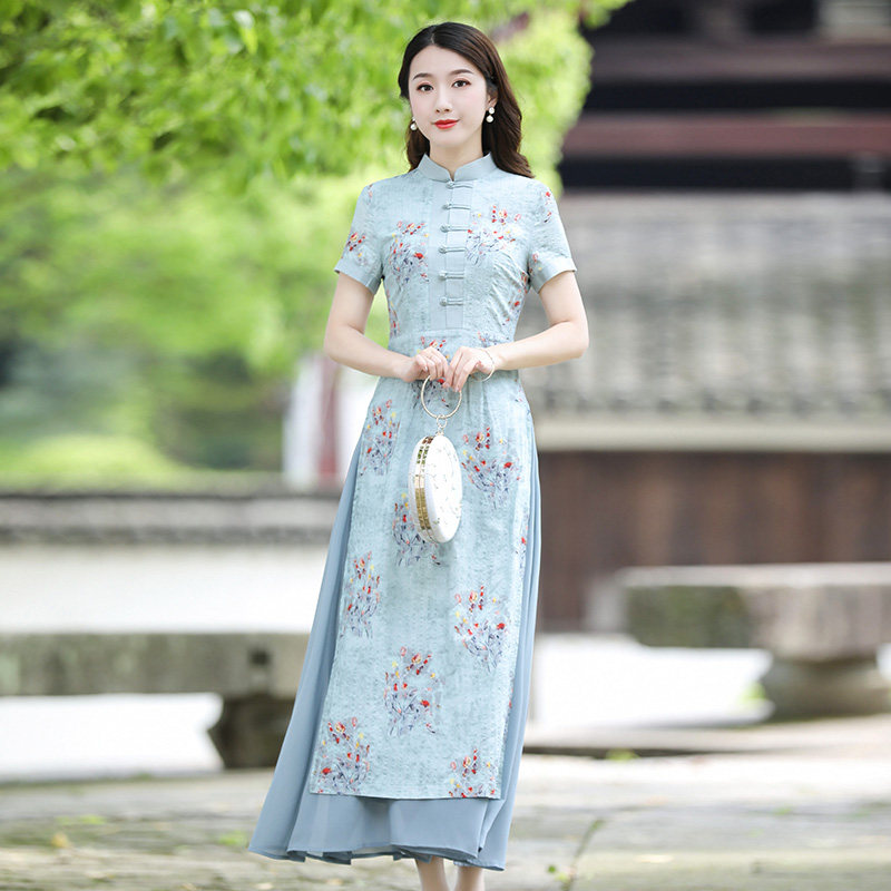 📚 正宗越南奥黛旗袍女长款改良版年轻款小清新气质高端夏季日常短袖