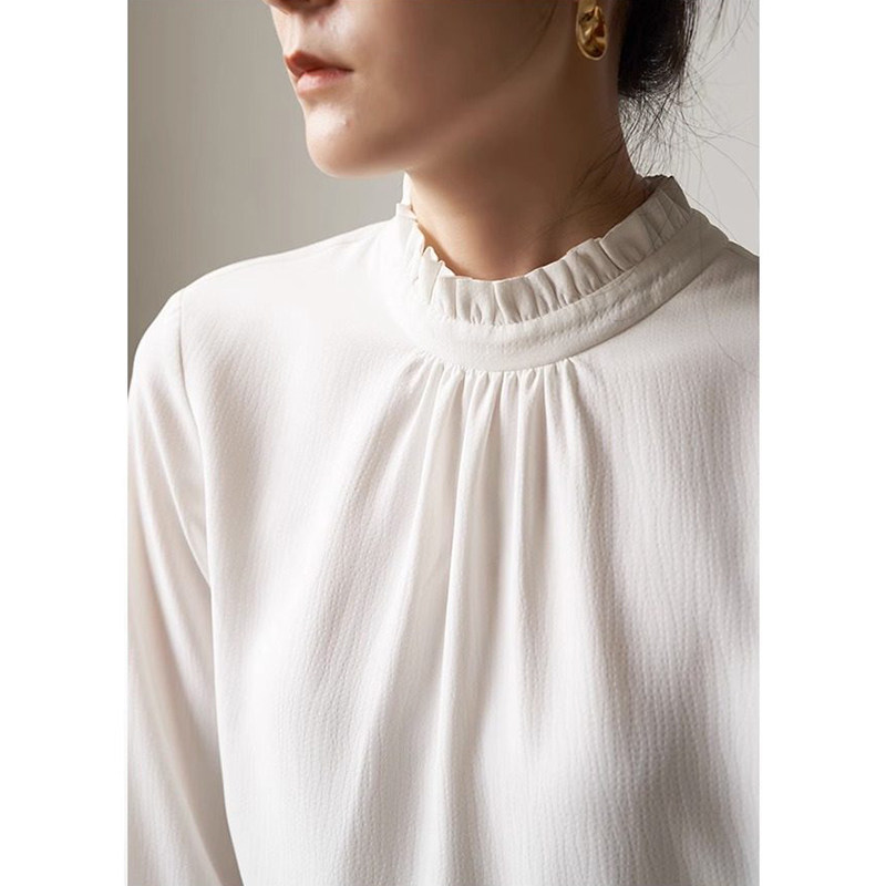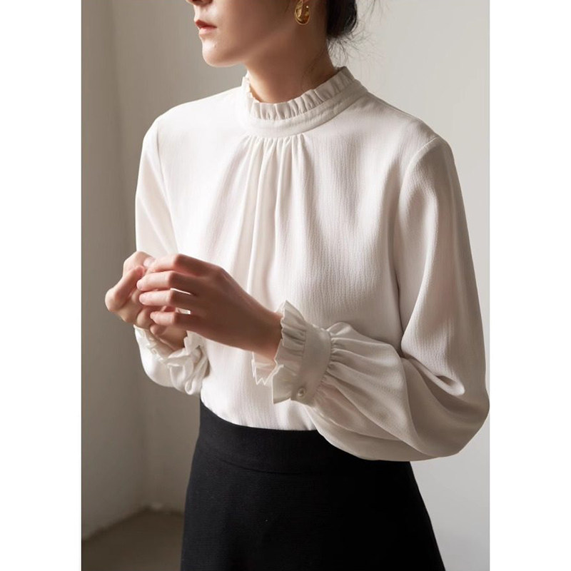 📚 法式优雅白色木耳边雪纺衬衫女春秋通勤内搭衬衣气质长袖叠穿上衣