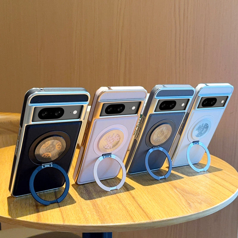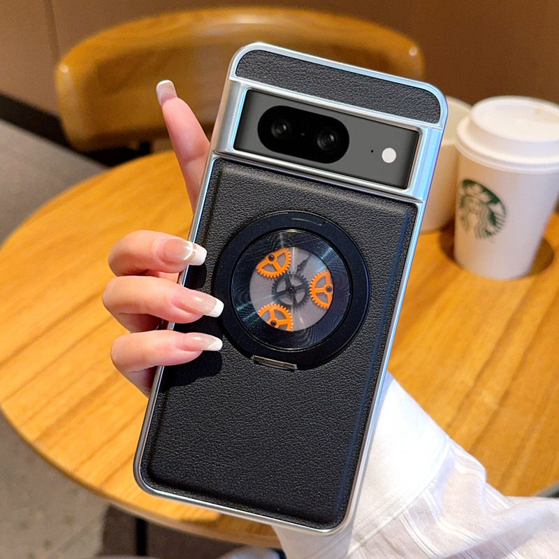 📚 津齐适用于谷歌Pixel8手机壳齿轮旋转支架Pixel8Pro电镀新款手机套Pixel10个性时尚奢华简约超薄防摔保护套