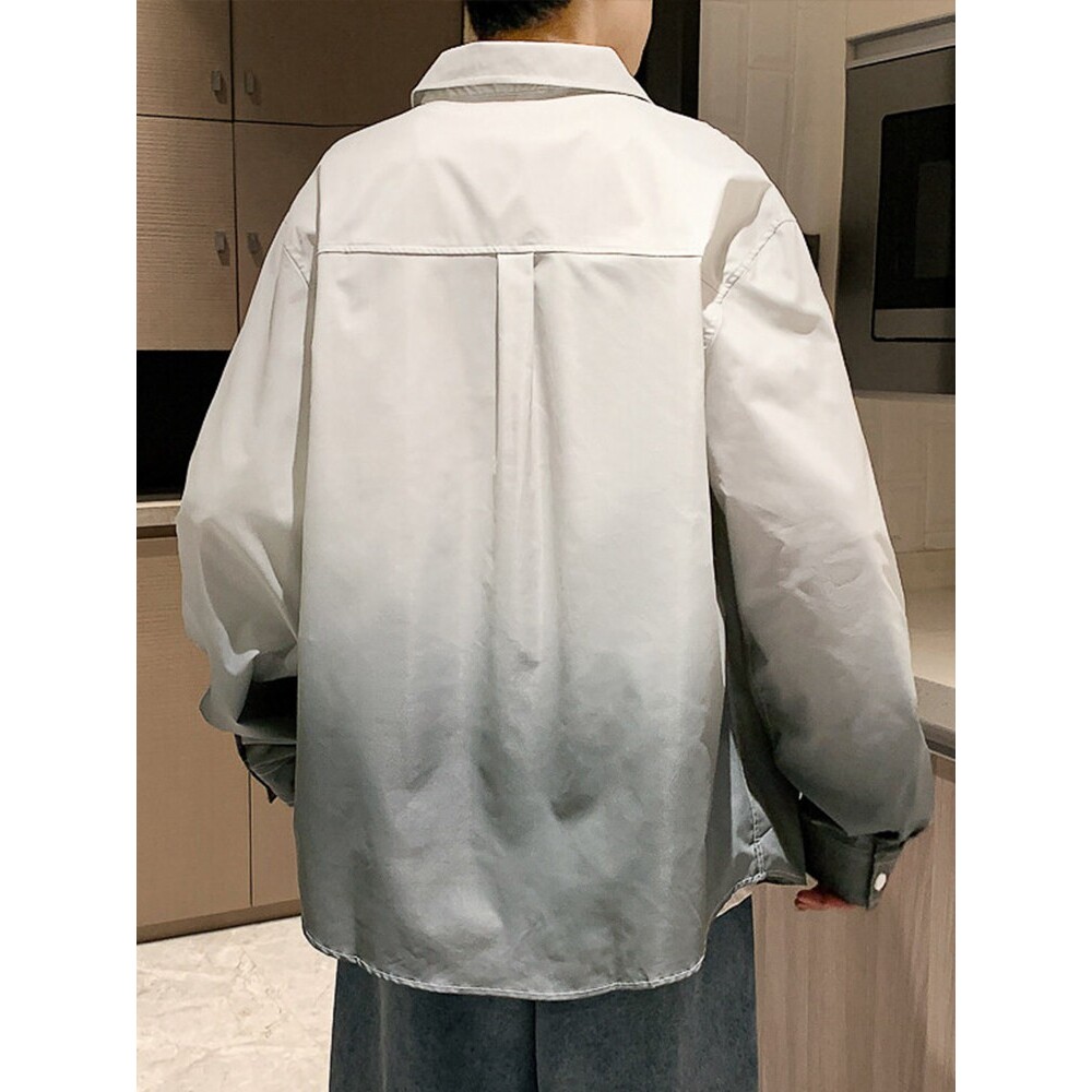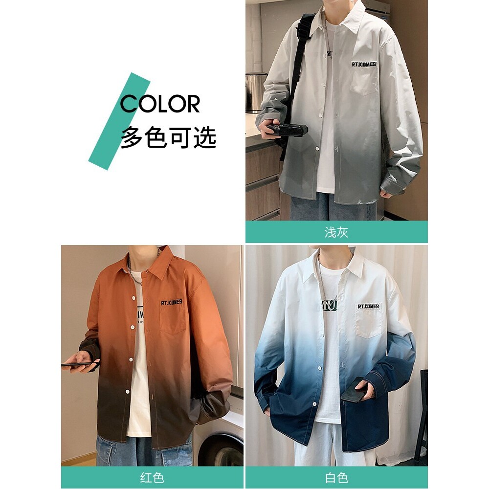 📚 渐变色衬衫男长袖春秋夏季潮牌翻领宽松休闲上衣美式男士衬衣外套