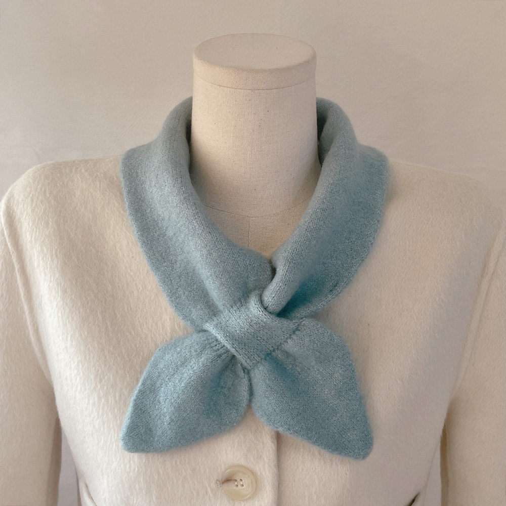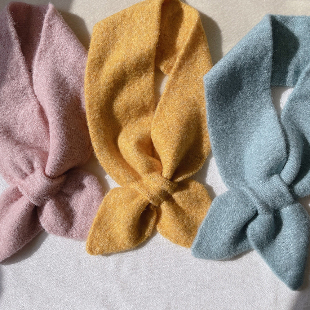 📚 纯色百搭桃心交叉懒人小围脖女含羊毛羊绒小领巾学生短款护颈围巾
