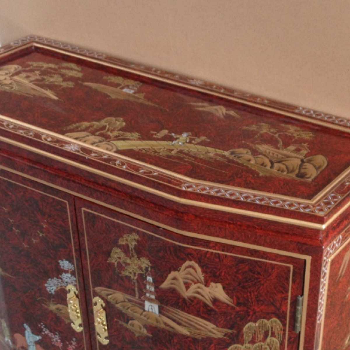 📚 至高美红色两门柜玄关柜彩绘家具手绘山水进门玄关柜门厅装饰柜子