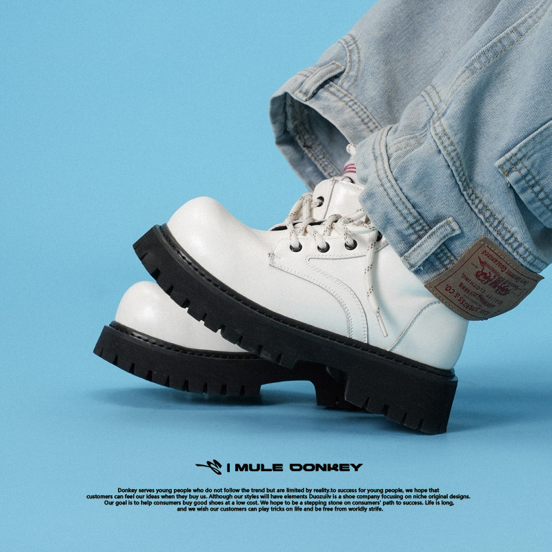 📚 多嘴驴Donkey白色马丁靴女款春季厚底增高百搭工装短靴小个子单靴