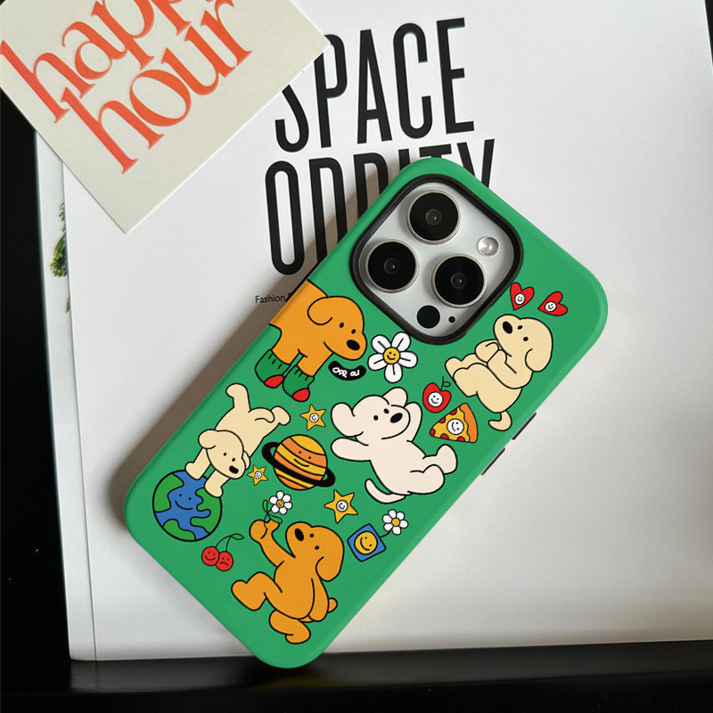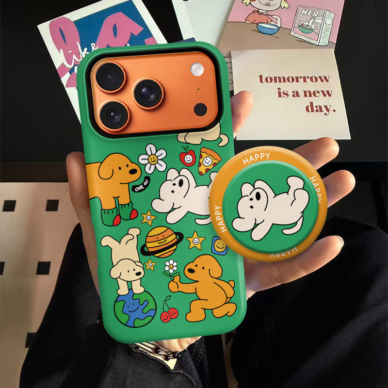 📚 狗狗乐园适用苹果17promax手机壳iphone16pro菲林磁吸支架个性华为P80小米15小众vivo防摔保护壳oppo清新可爱