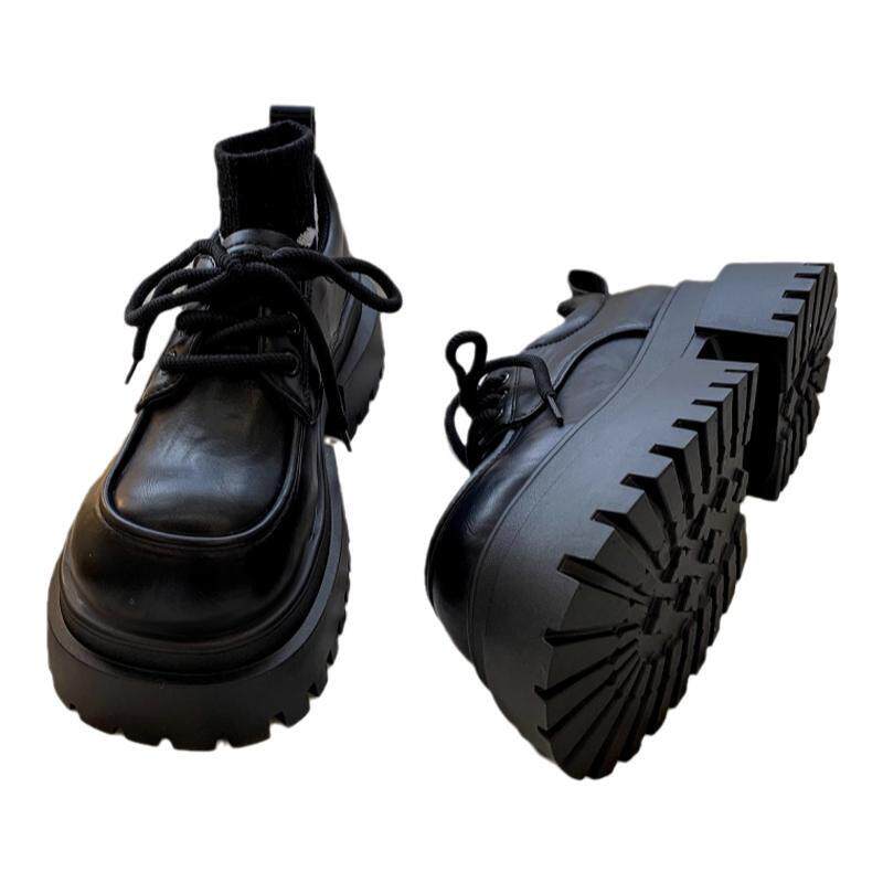 📚 棕色系带小皮鞋女2025秋季新款加绒百搭覆古英伦风厚底粗跟乐福鞋