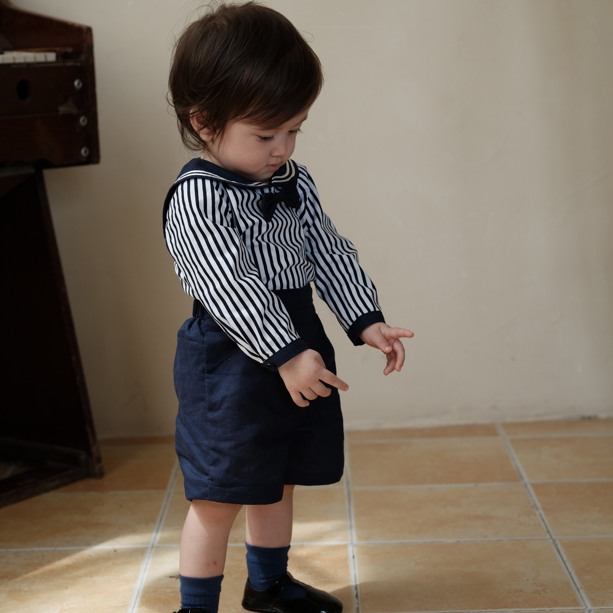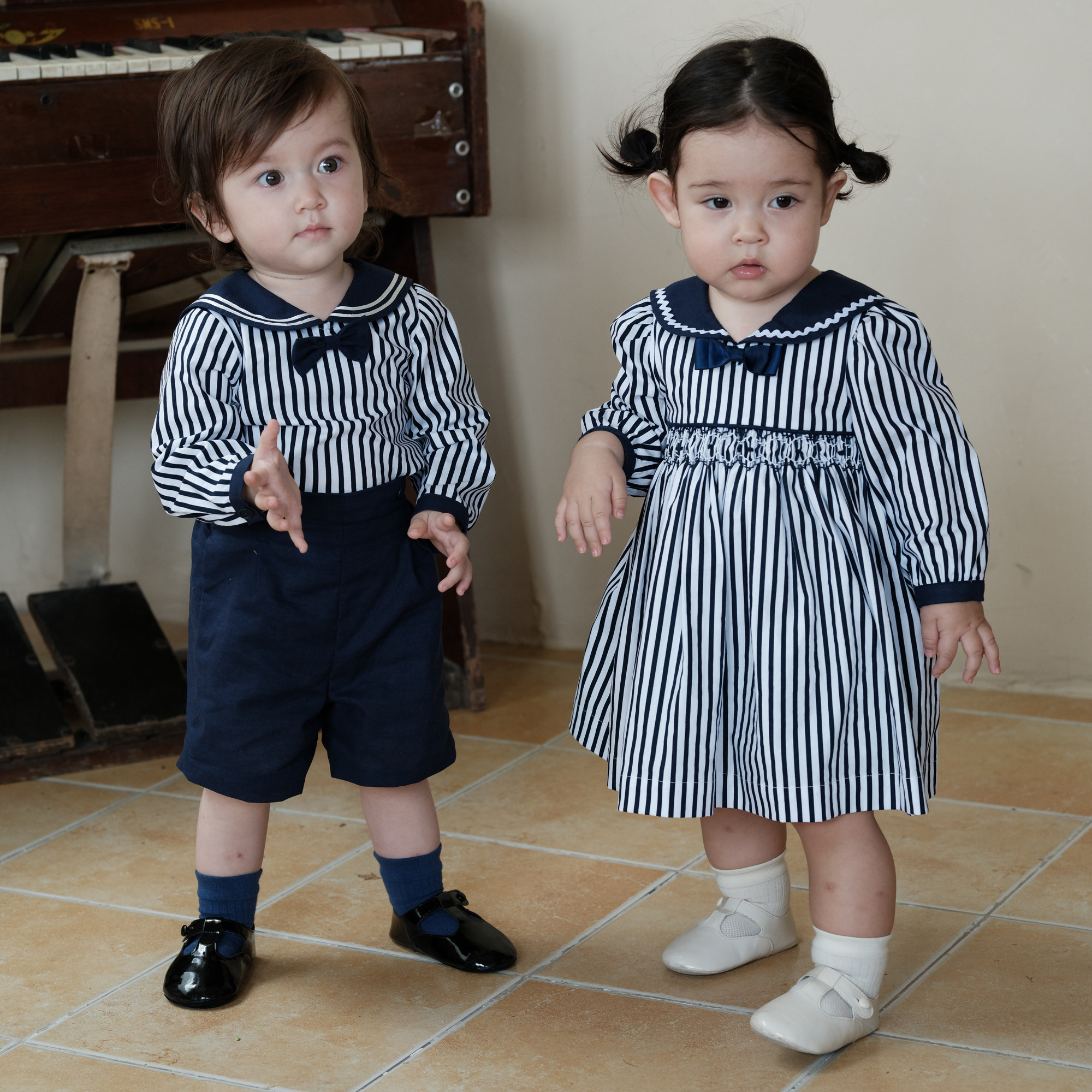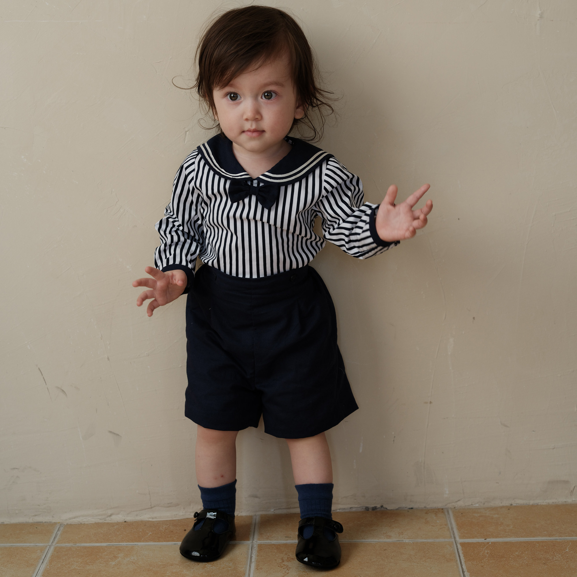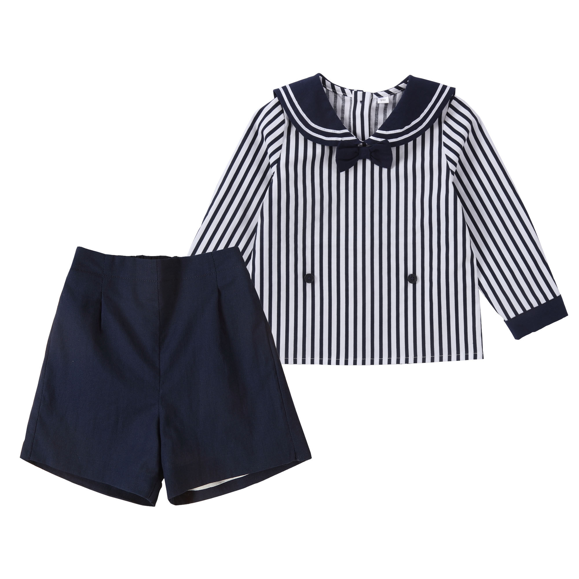 📚 three sailors男童学院风经典条纹海军风衬衣+短裤两件套套装秋季